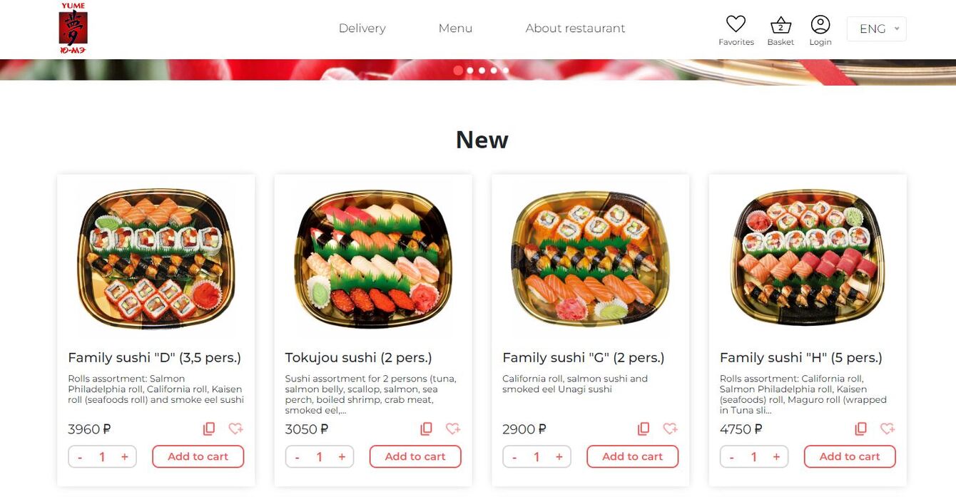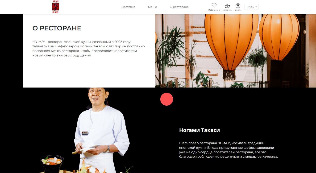 Владельцем ресторана японской кухни «Ю-МЭ» было решено сделать редизайн сайта и создать сервис доставки. Предыдущий сайт был сделан платформе MODX Evolution. Сайт был плохо оптимизирован под мобильные устройства, а дизайн не соответствовал тенденциям и пожеланиям заказчика. Необходимо было: