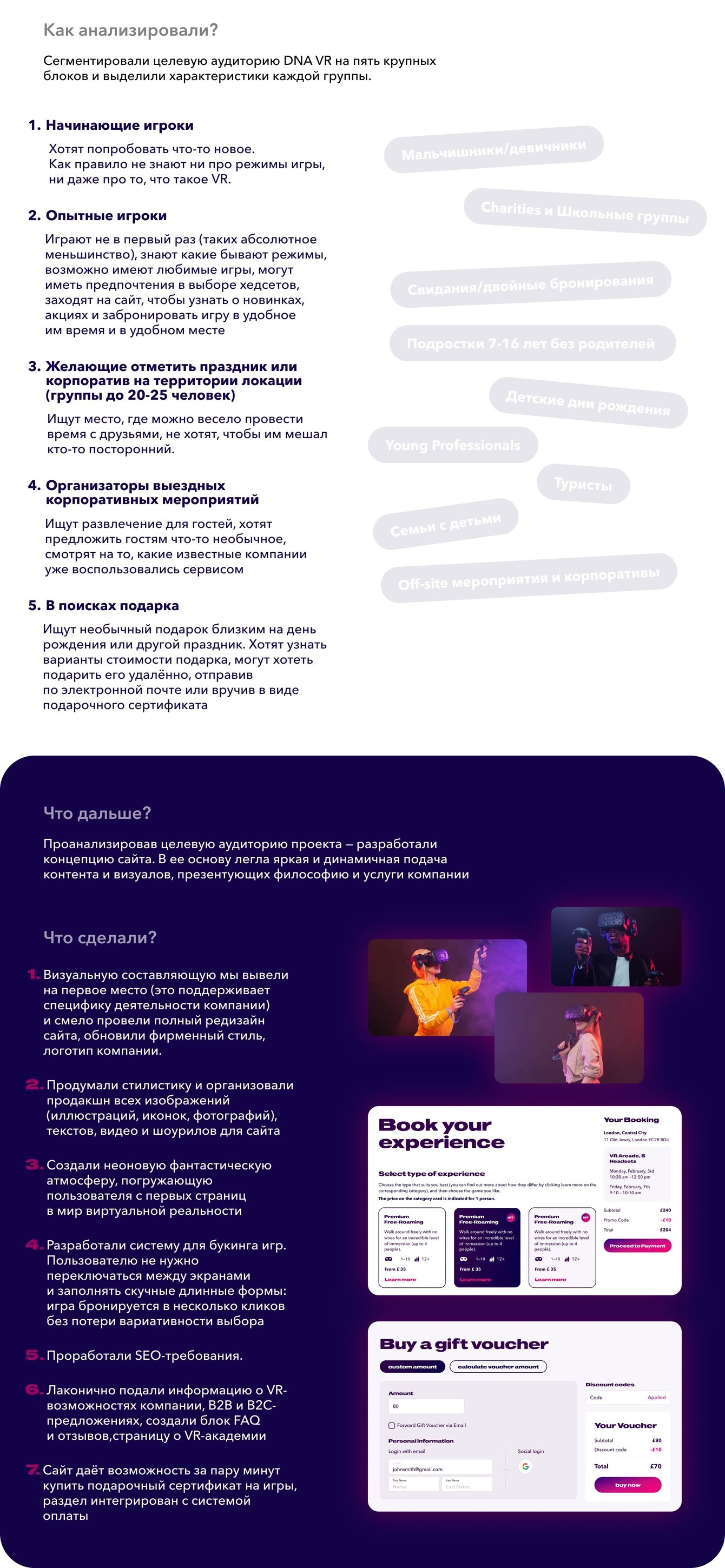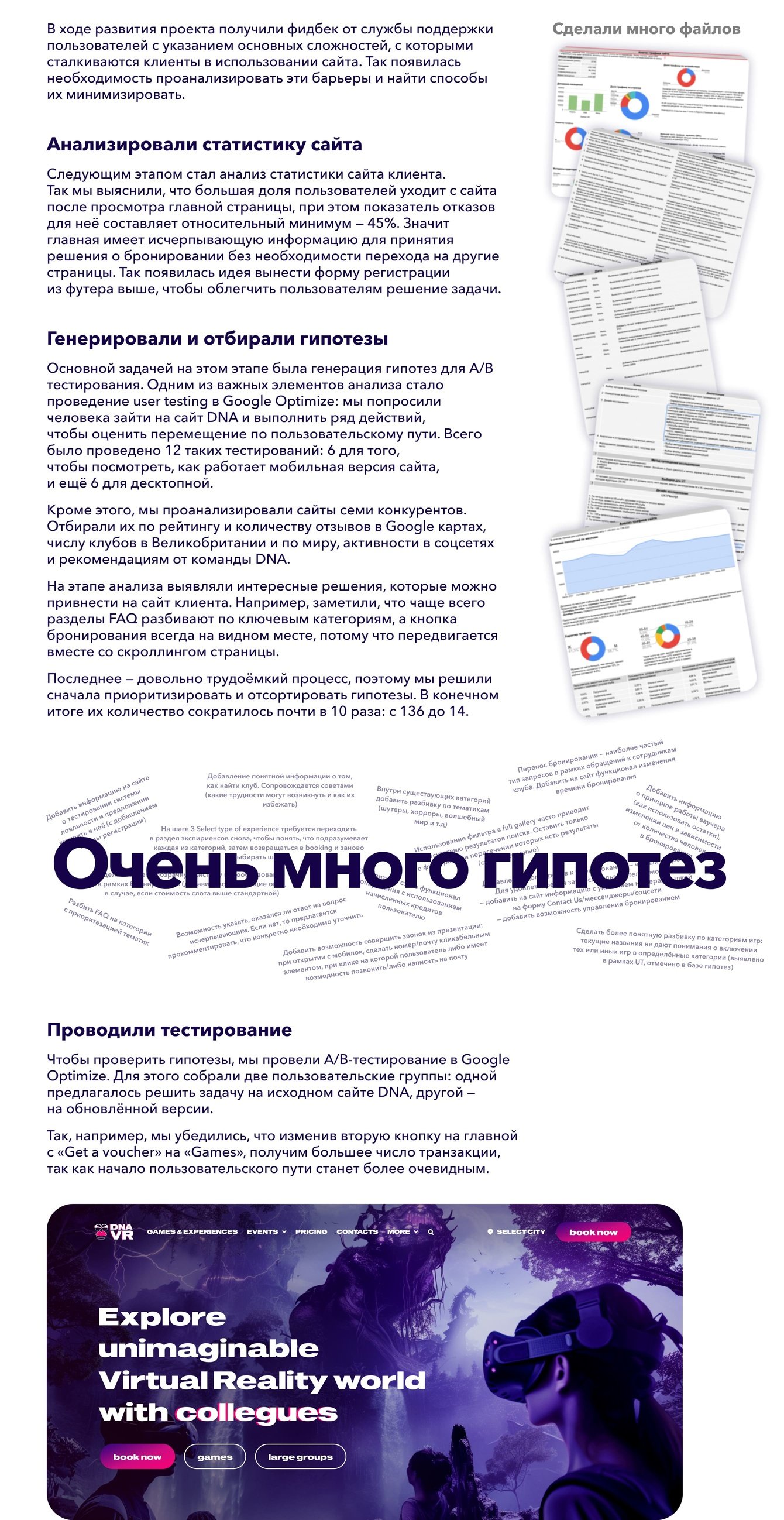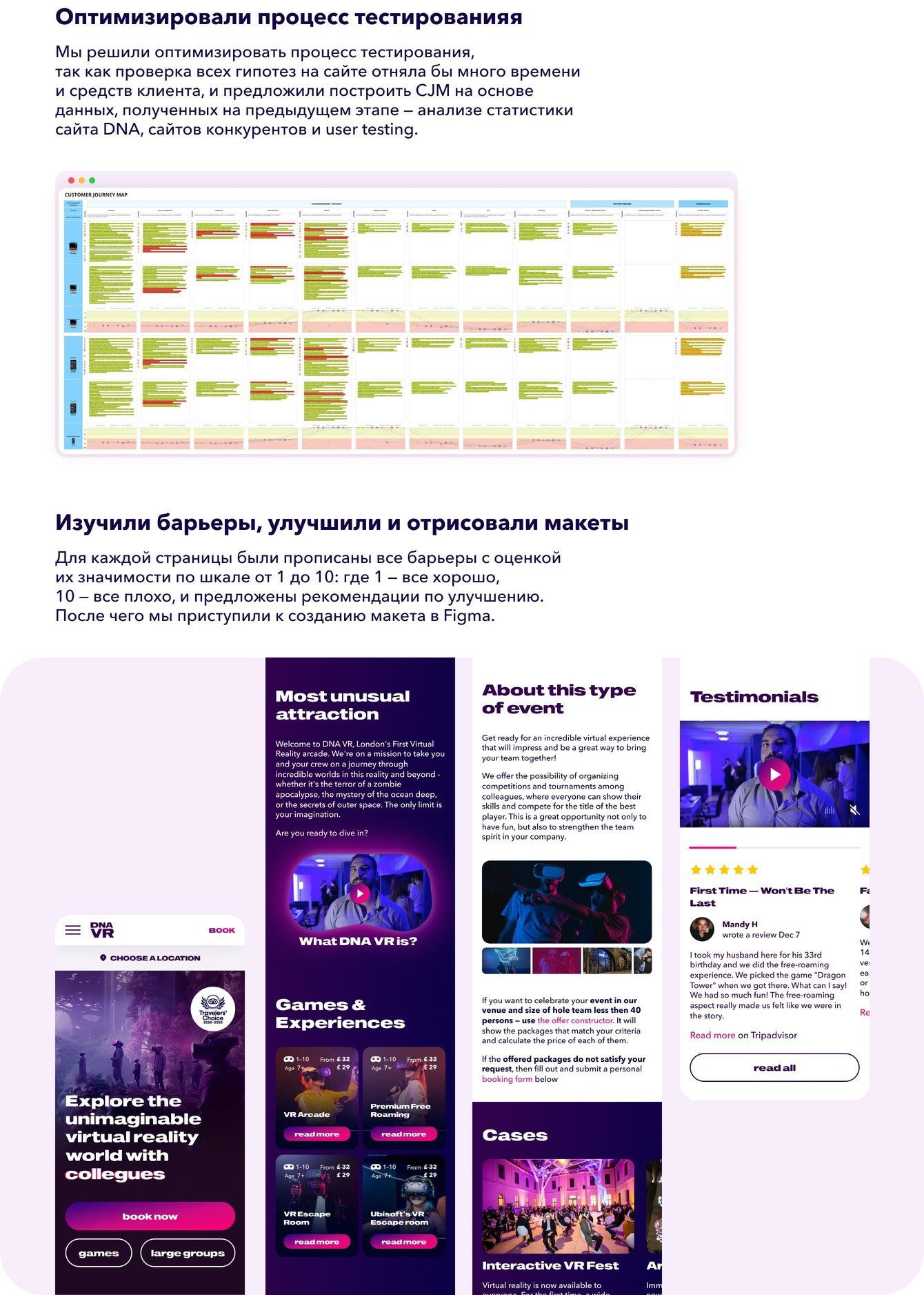 Сайт первого центра виртуальной реальности в Лондоне отразил дух и возможности компании и познакомил с VR тысячи пользователей. В 2020 году центр DNA VR был выбрал одной из лучших достопримечательностей по мнению экспертов премии Travelers Choice Awards от TripAdvisor.