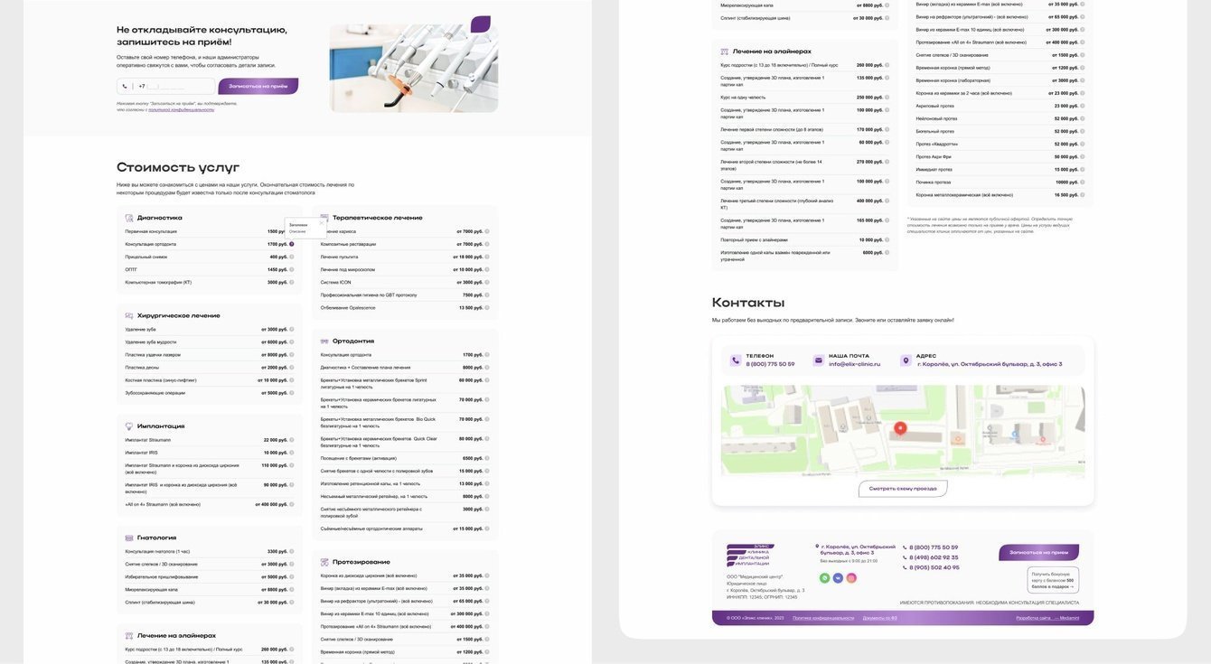 Разработали структуру блоков таким образом, чтобы закрыть все возможные вопросы пользователей и сформировать доверие к клинике.