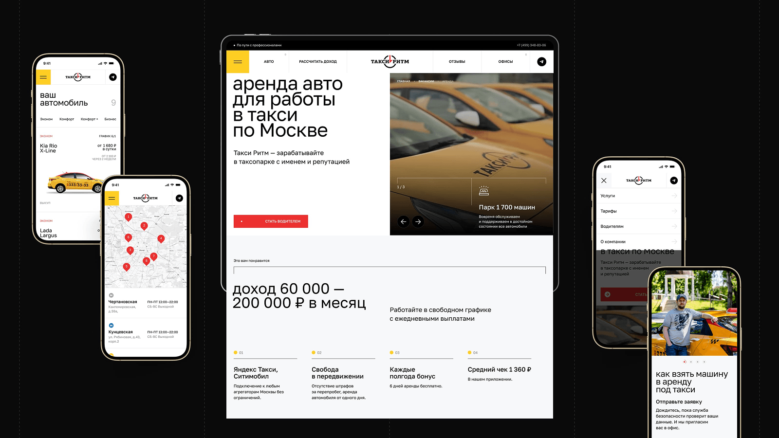 Такси Ритм — крупнейший таксопарк в Москве. Изначально компания пришла к Oxem за работами по SEO-продвижению и за созданием на основном сайте Такси Ритм страницы, на которой водители смогут арендовать машины. Но в процессе работы у клиента появлялись новые потребности, с которыми он приходил к нам:
