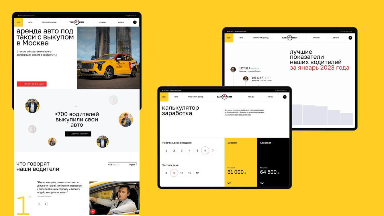 Стартовали работу аналитикой, а закончили стильным проектом и дальнейшим SEO-продвижением. Внедрили несколько решений, которые повысили вовлеченность пользователей и донесли до целевой аудитории плюсы работы с брендом: можно зарабатывать больше и работать комфортнее, если арендовать машину у Такси Ритм.