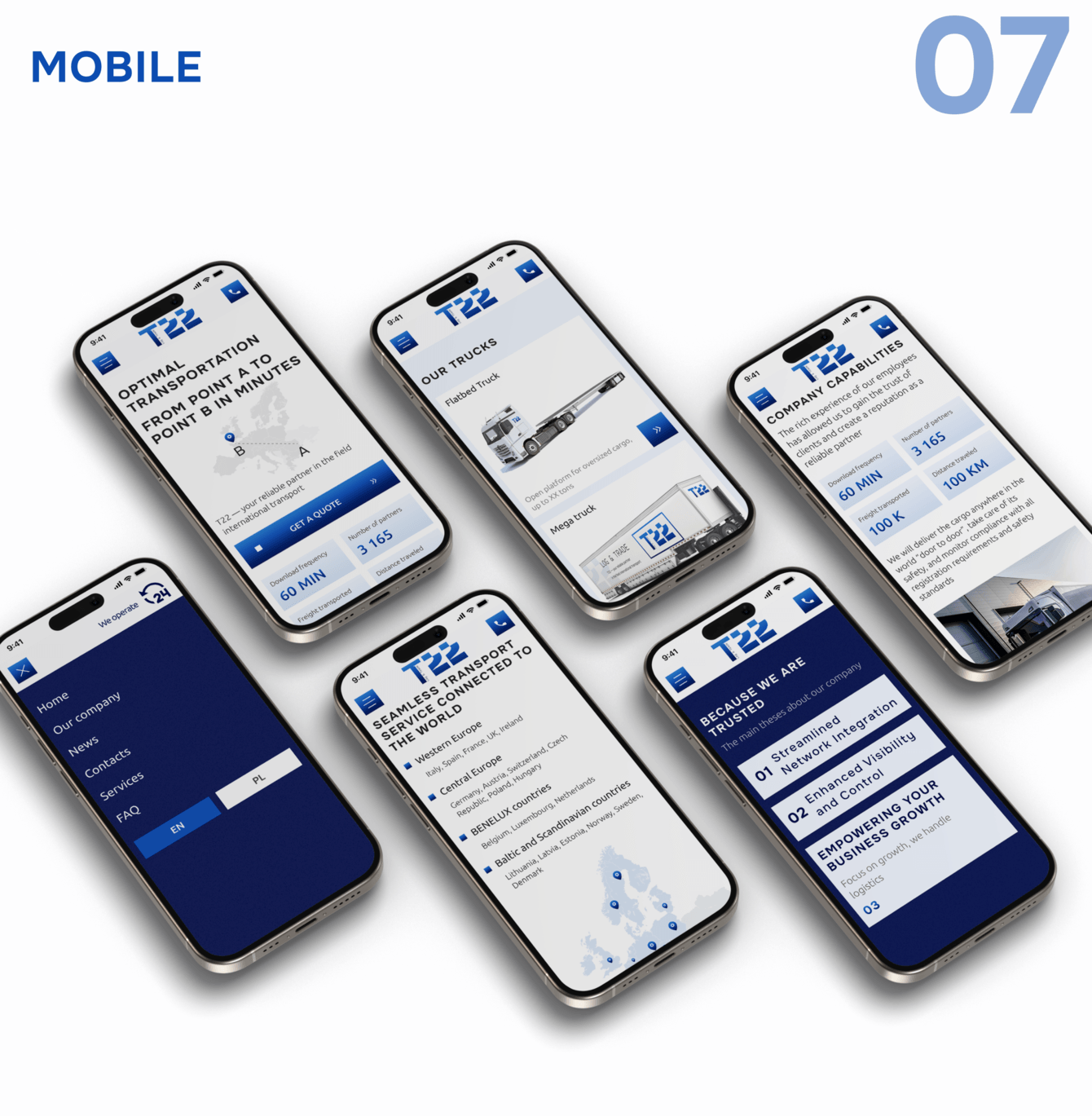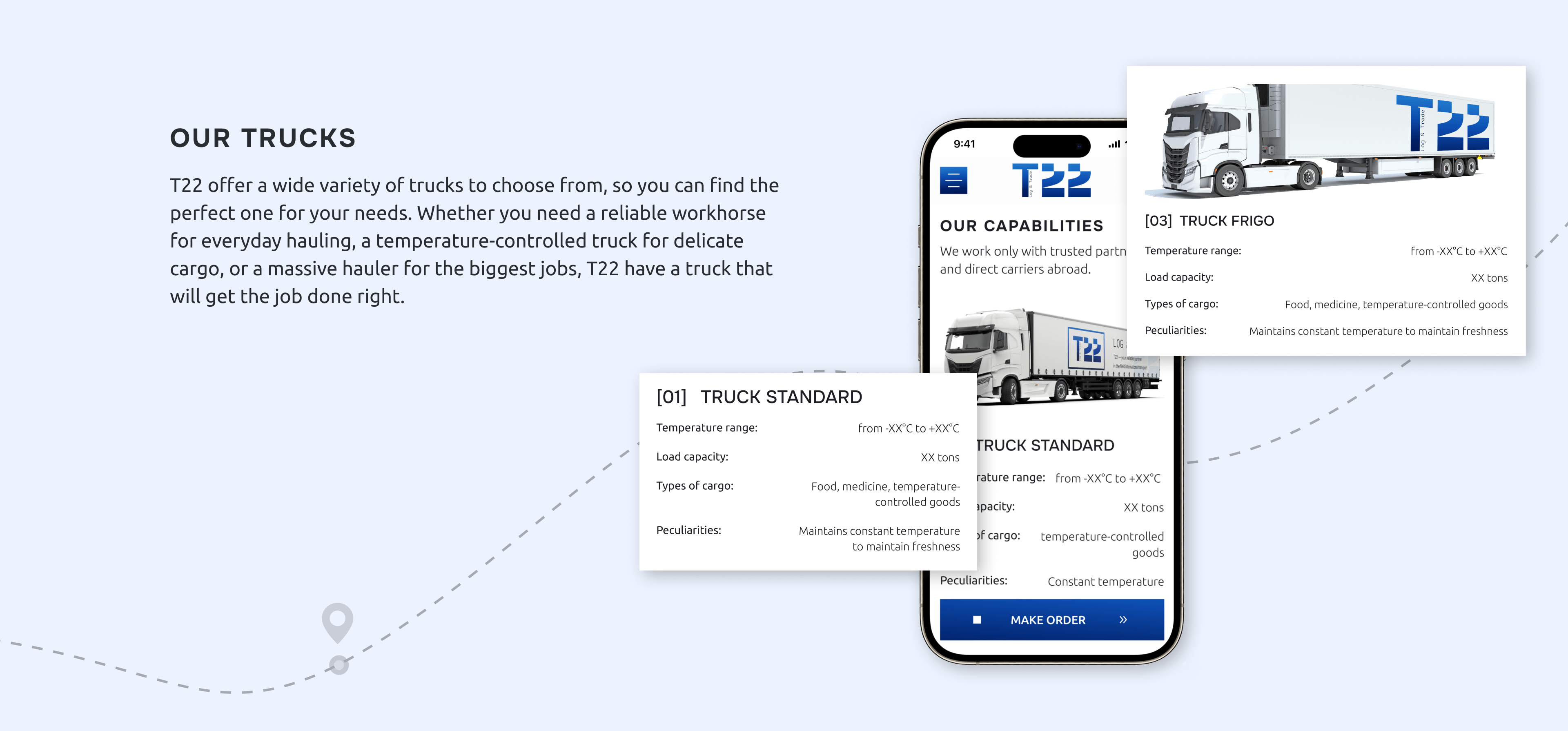 Клиенты T22 сталкиваются с типичными логистическими болями: неясности на границе, подвисшие документы, потерянные грузы и вечное «Где мой заказ?». Нам нужно было сделать сайт, который решает эти тревоги до того, как они возникнут. Чётко показывает услуги, внушает доверие, даёт ответы ещё до того, как менеджер ответит в чате.