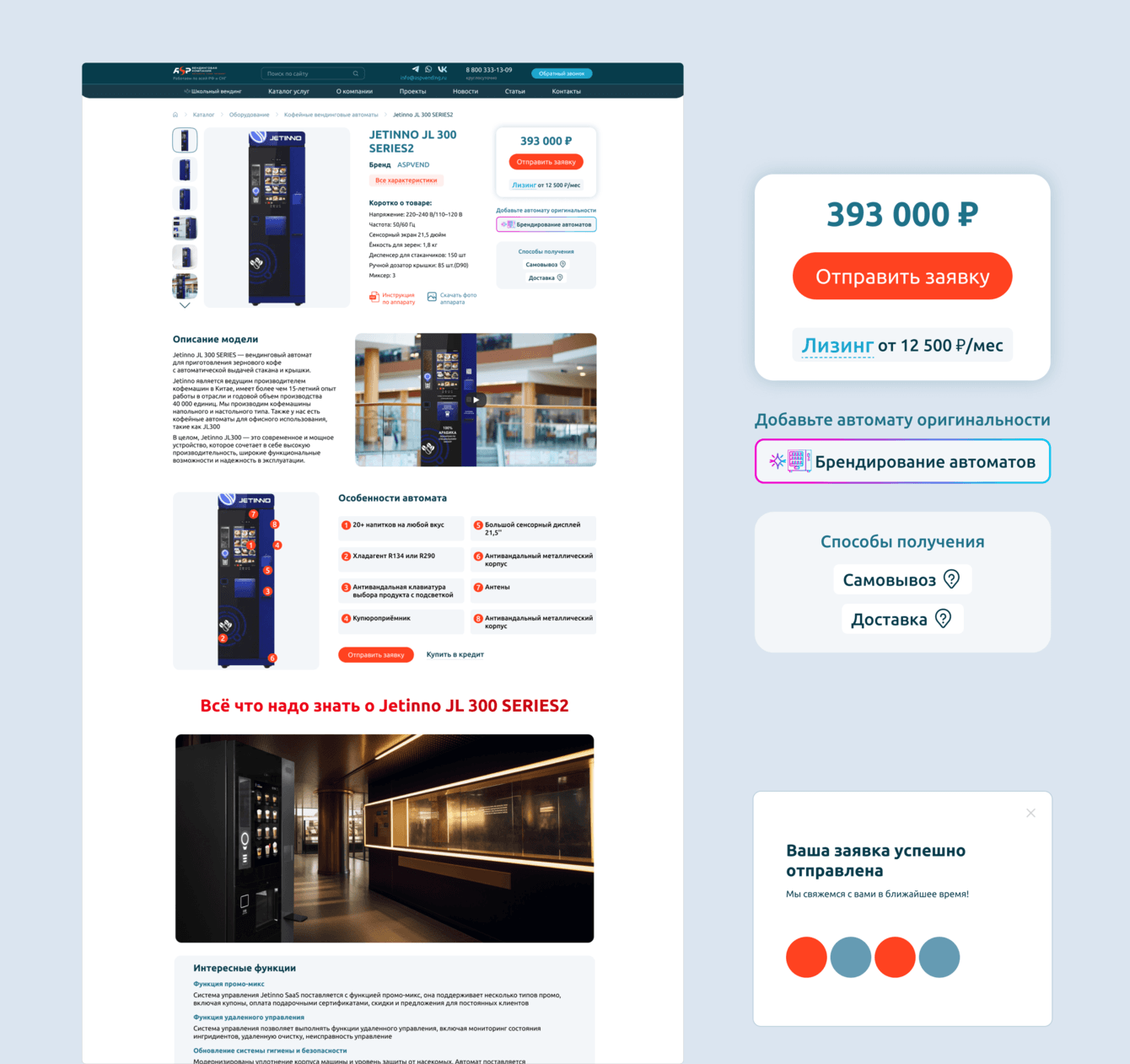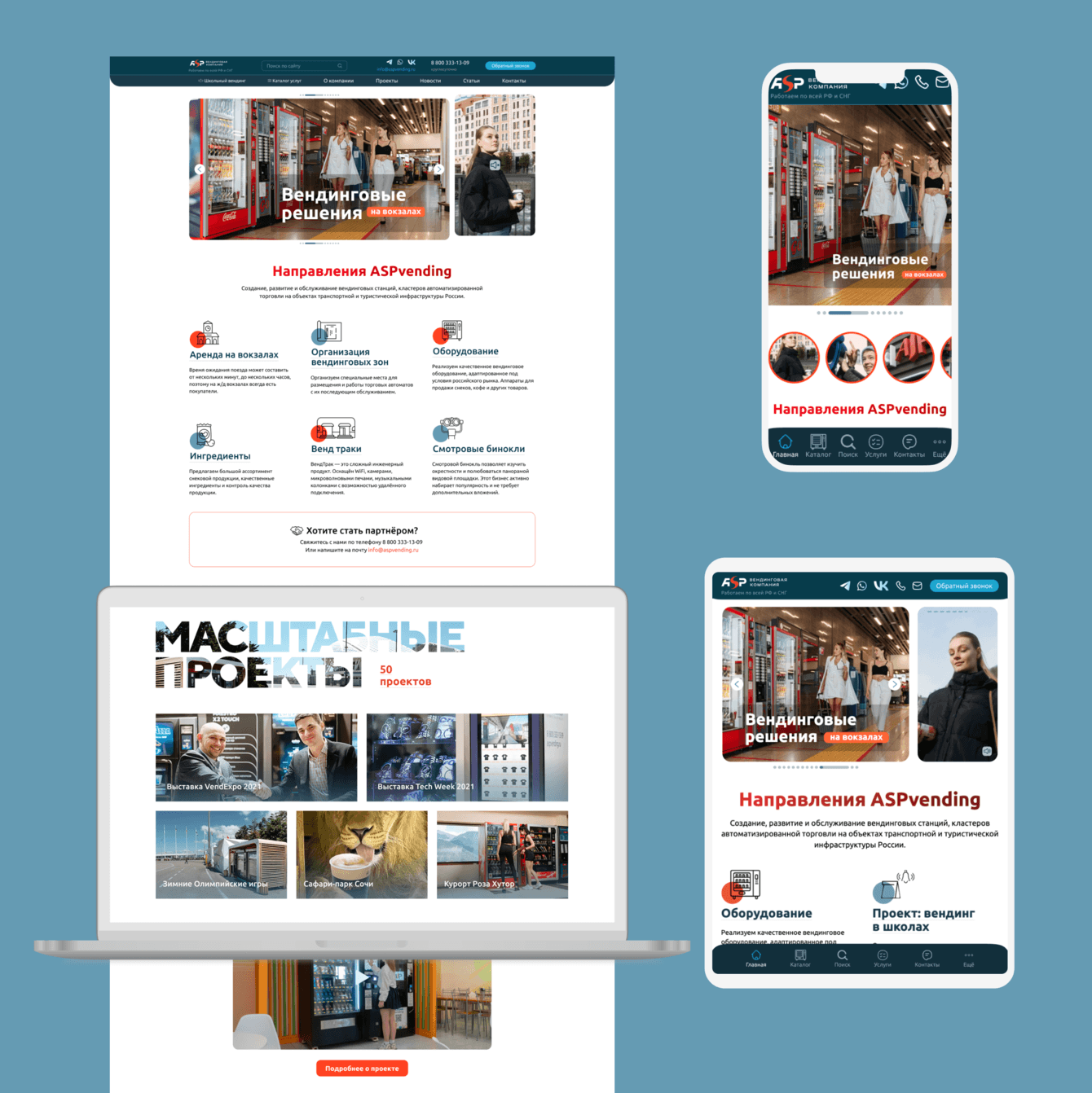 Основная цель проекта заключалась в создании современного, функционального и удобного корпоративного сайта, который бы не только представлял компанию, но и способствовал увеличению продаж вендингового оборудования.