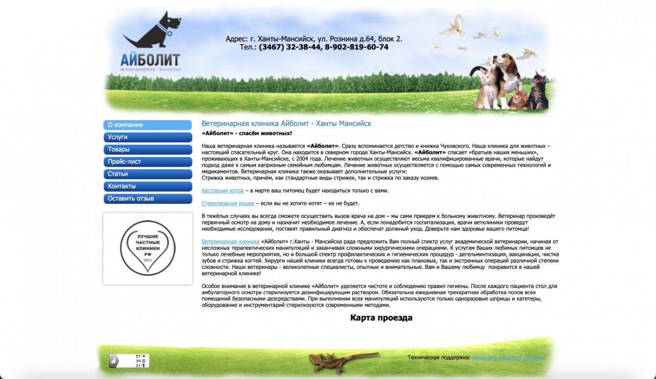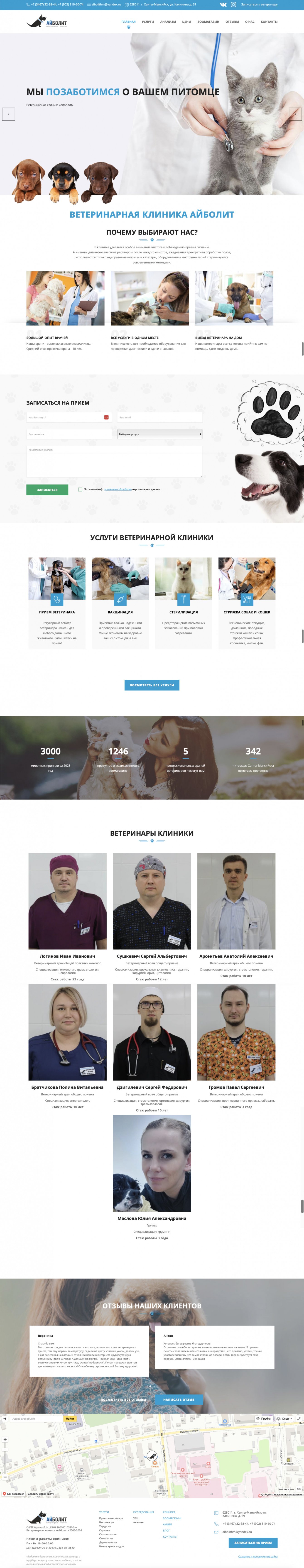 Конкуренция у клиники минимальная. На весь Ханты-Мансийск, в тот момент, когда к нам пришел клиент, не было больше частных клиник. Есть только государственная ветеринарная клиника, но качество услуг по мнению жителей, не соответствовало их требованиям. Но даже при минимальной конкуренции, текущий сайт не отвечал требованиям, не был в ТОП, и был не адаптивен под мобильные устройства.
