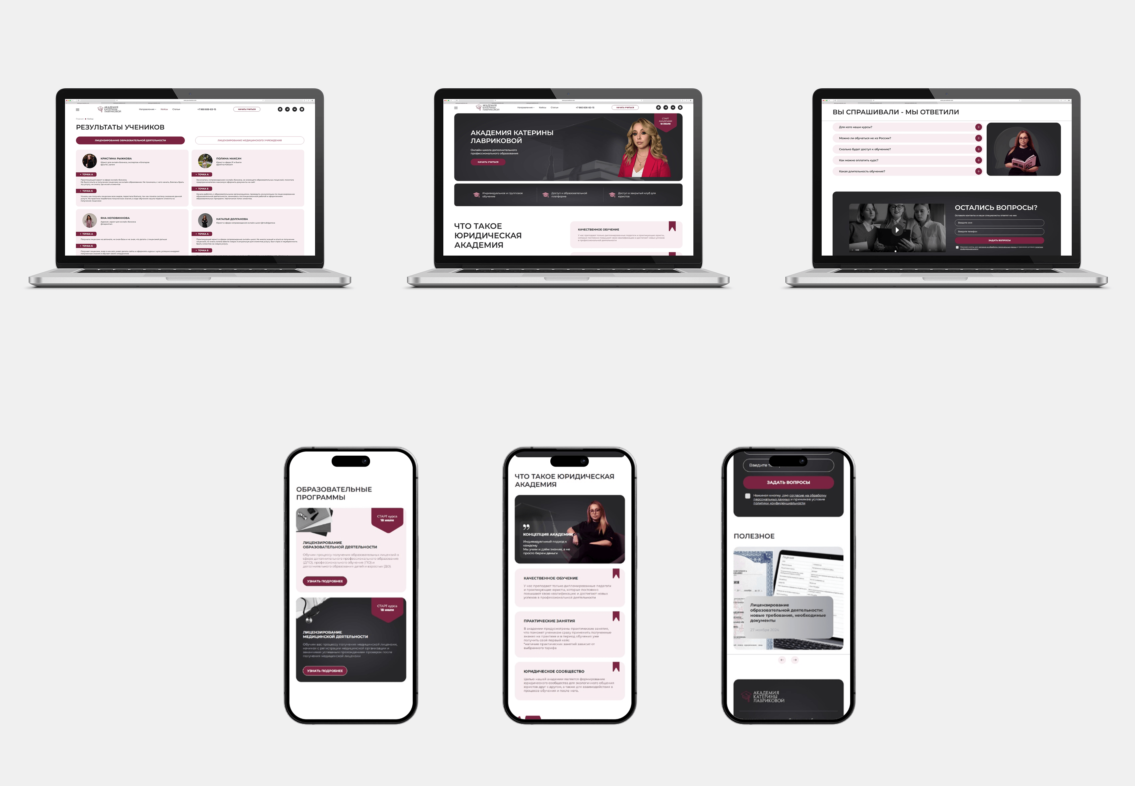 Сайт помогает будущим студентам почувствовать атмосферу академии ещё до подачи заявки, формирует доверие к бренду и усиливает экспертность Катерины Лавриковой. Проект получился цельным, современным и полностью соответствующим духу образовательного пространства.