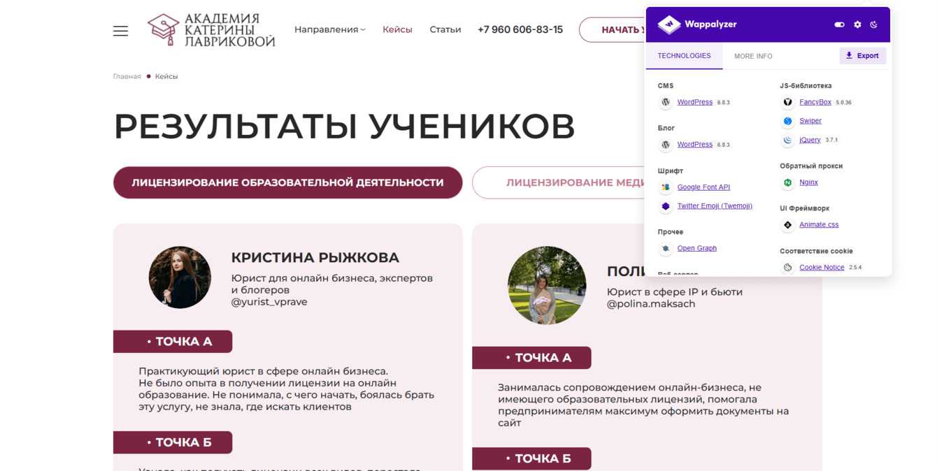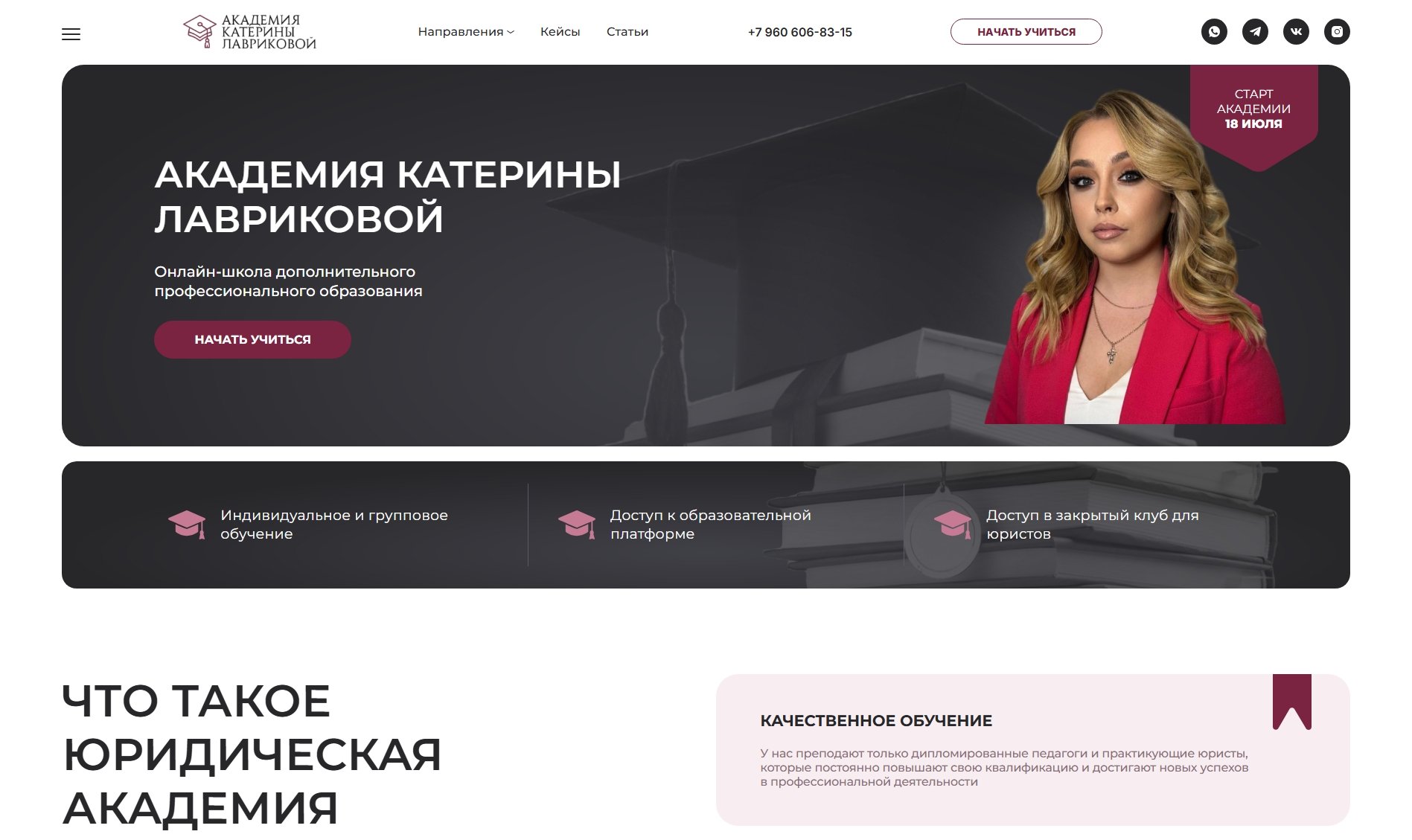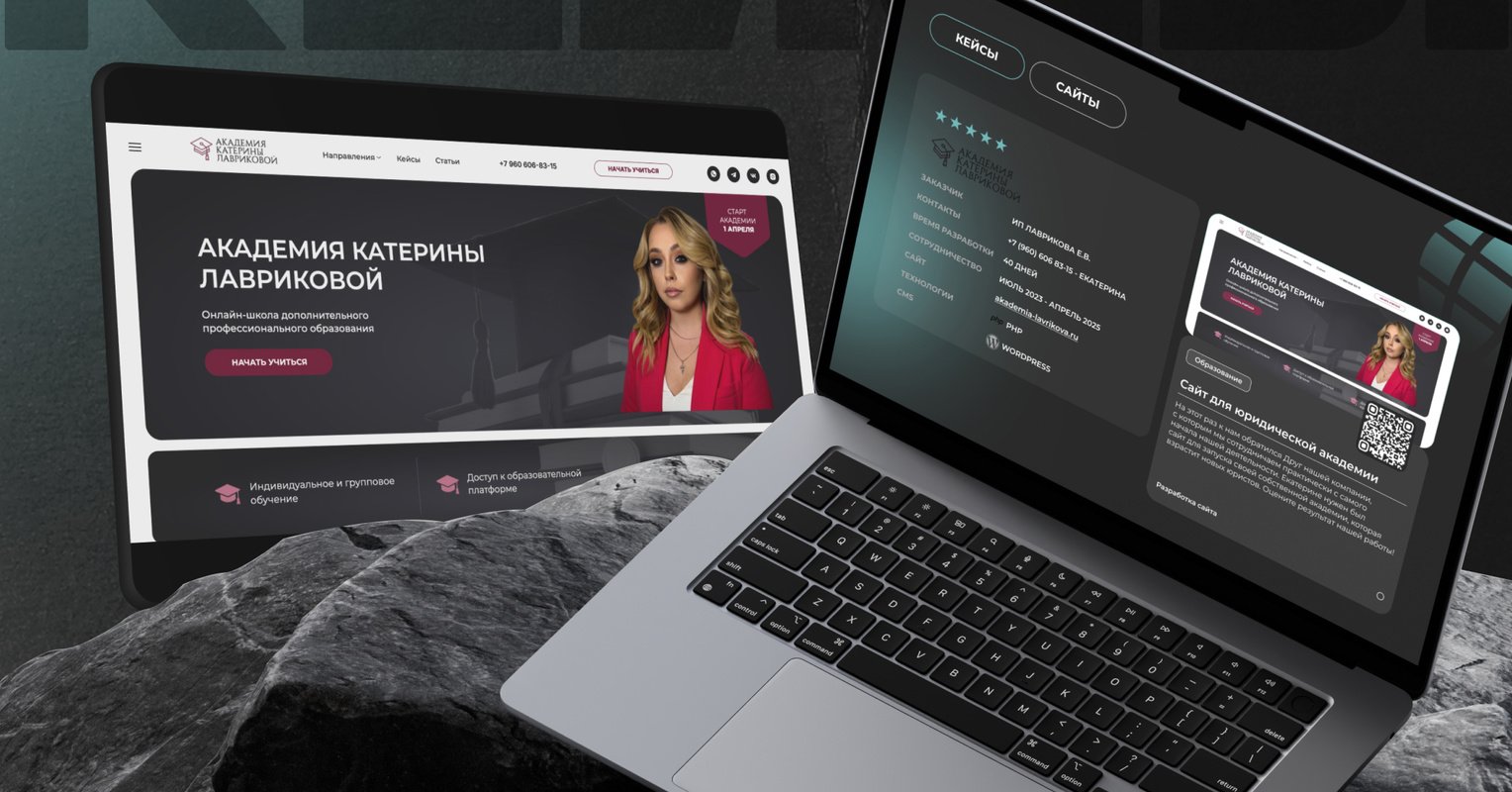 Наш клиент — юридическая академия Катерины Лавриковой, образовательный проект с сильной миссией: давать реальные знания, а не формальный “курс ради курса”. Академия делает упор на индивидуальный подход и практику — ученики не просто изучают теорию, а сразу получают свои первые кейсы уже в процессе обучения.