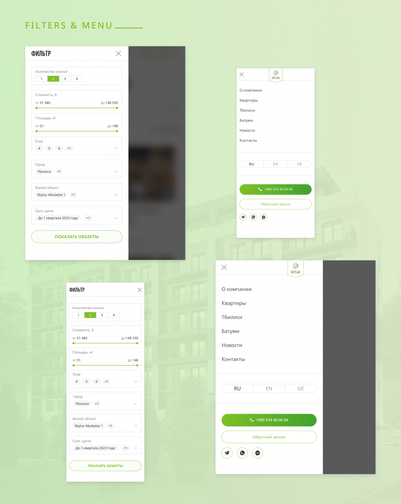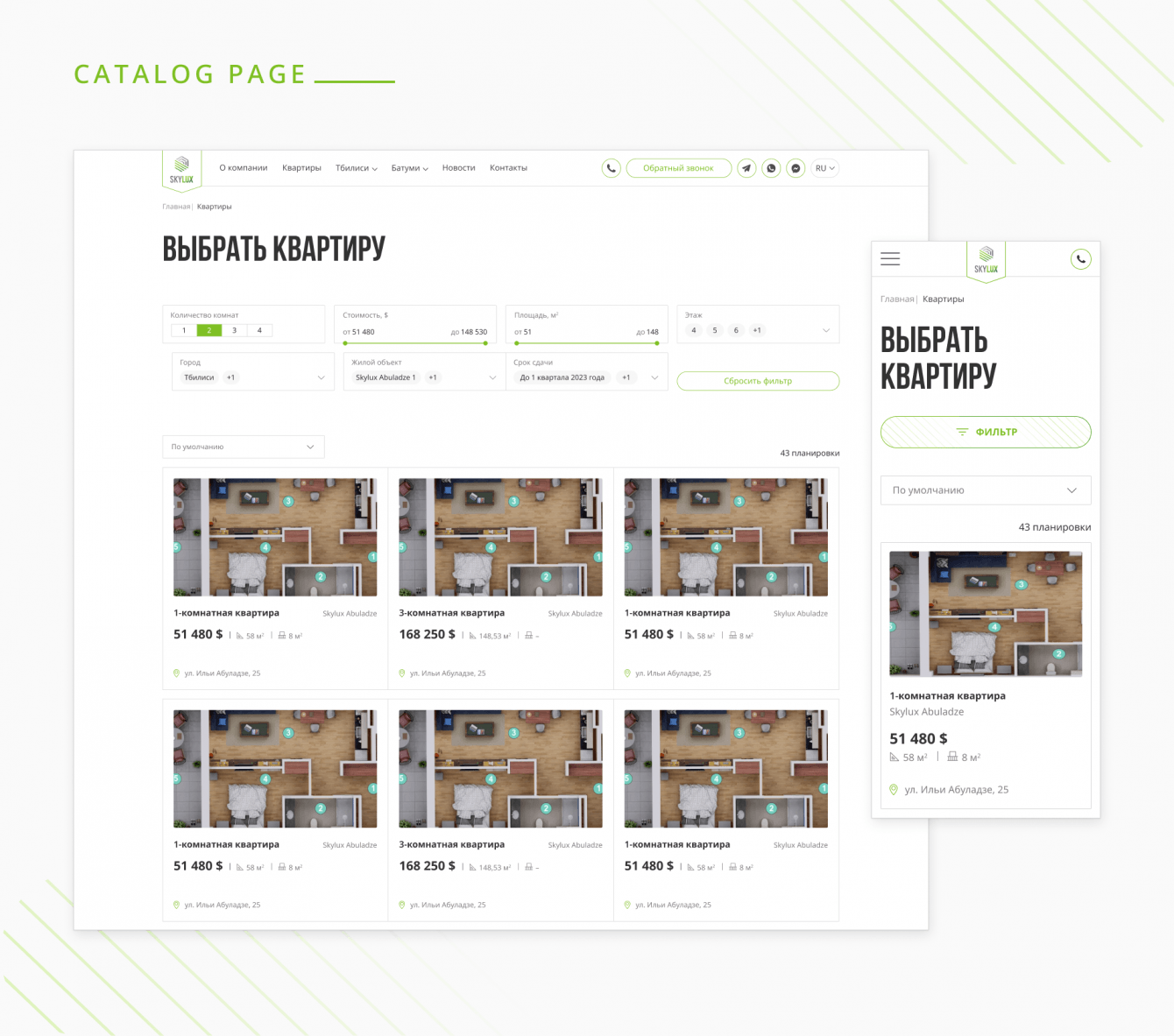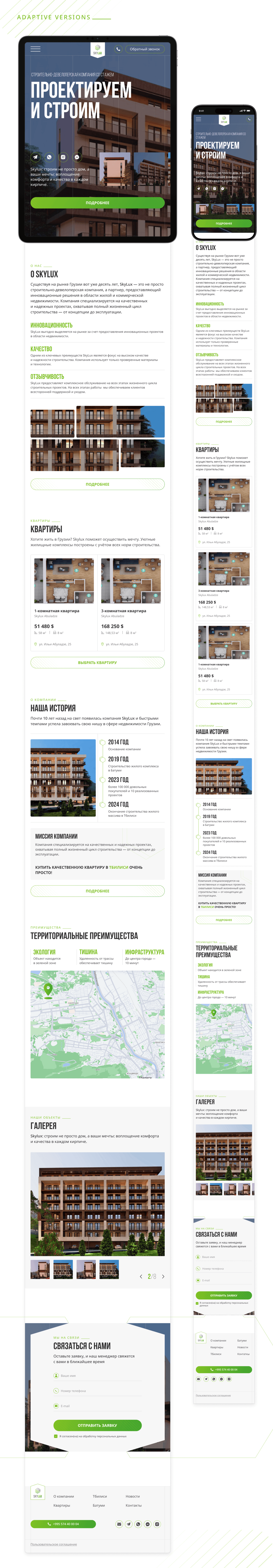 Создать корпоративный сайт для застройщика SkyLux, работающего на грузинском рынке уже десять лет. Сайт должен подчеркнуть профессионализм и качество услуг компании, а также представить портфолио проектов, описать опыт и специализацию.