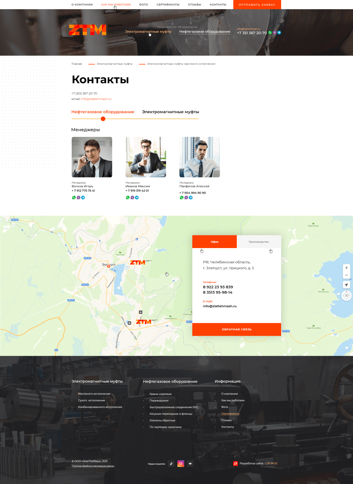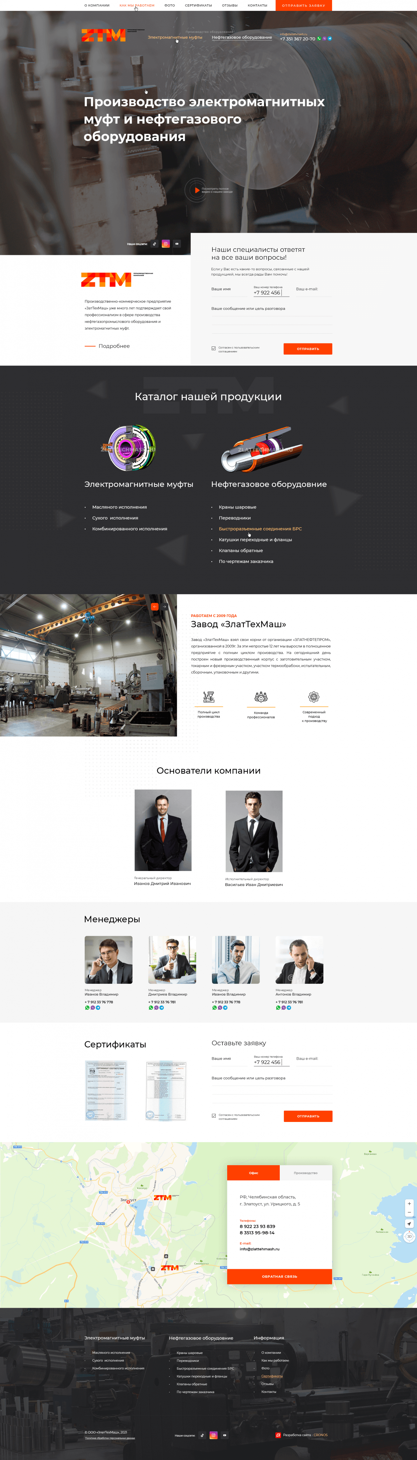 Создать корпоративный сайт завода по производству нефтегазового оборудования и электромагнитных муфт
