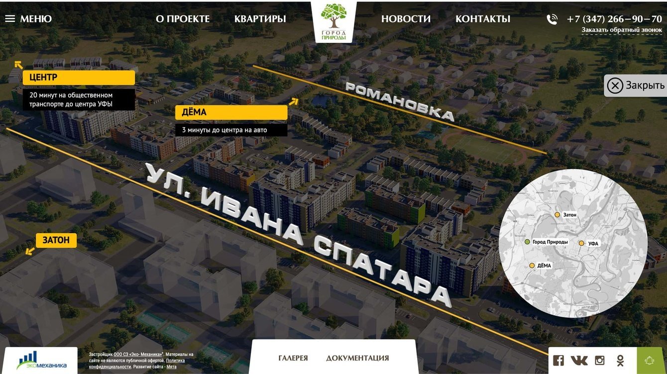 Одной из задач, поставленных перед нами, было доходчиво объяснить потенциальным покупателям, где территориально расположился этот природный жилой уголок. Объединив графику и описания, мы получили быстрый и наглядный интерактив. А пользователям-староверам оставили возможность просто воспользоваться классической картой.