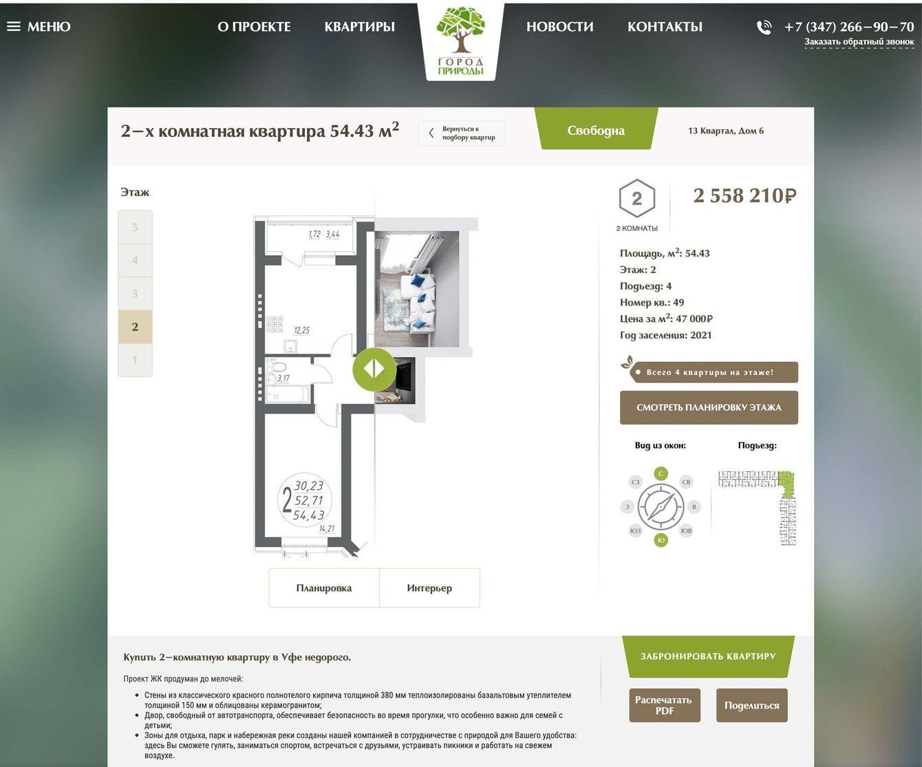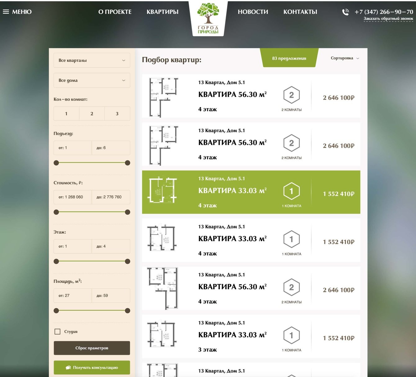 C помощью веб-сайта мы помогаем пользователям выбрать квартиру онлайн на любых устройствах, используя нативные механики.