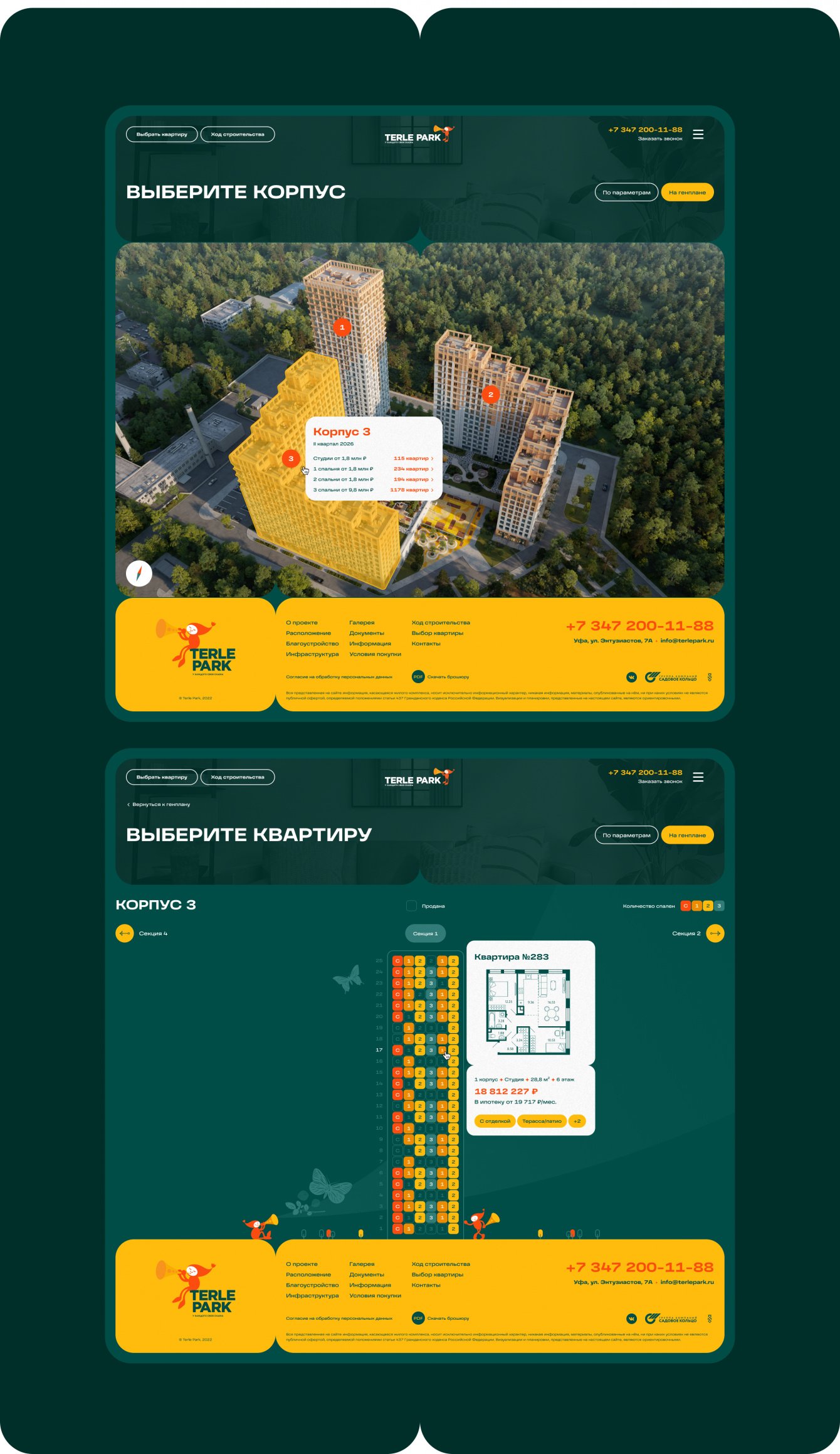 Мы разработали сайт для жилого комплекса Terle Park, расположенного в Уфе. Живописные места, развитая инфраструктура в шаговой доступности, удобное транспортное сообщение в получасе езды от центра Уфы – вот те факторы, которые делают этот проект уникальным.