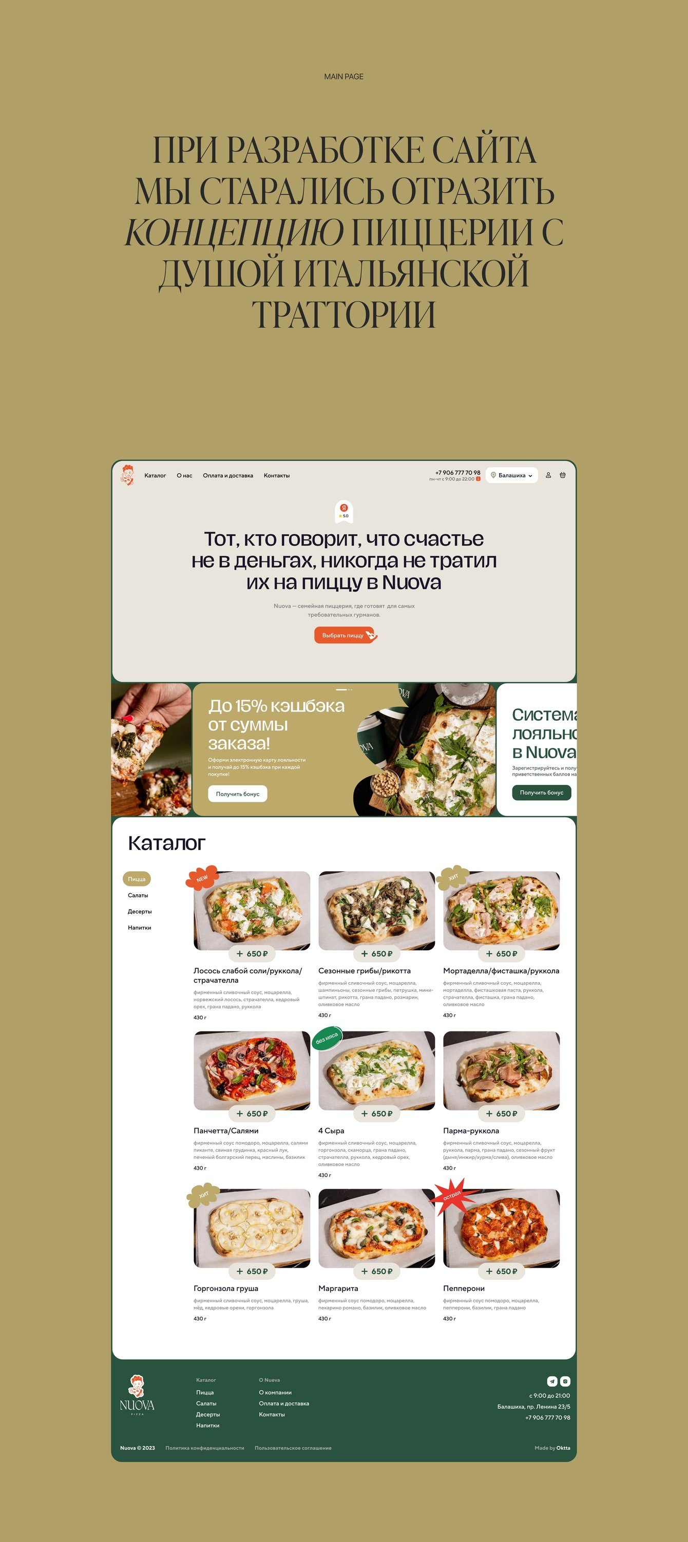 Разработать сайт доставки пиццы, отразить концепцию пиццерии с душой итальянской траттории