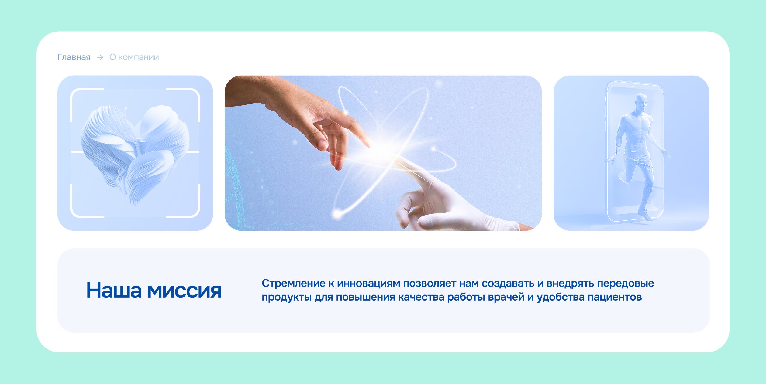 Разработать сайт, который станет главной визитной карточкой и лицом компании. Наглядно показать сложные технологические продукты и транслировать экспертность команды. Отстроиться от конкурентов и выделиться на рынке медицинских технологий.