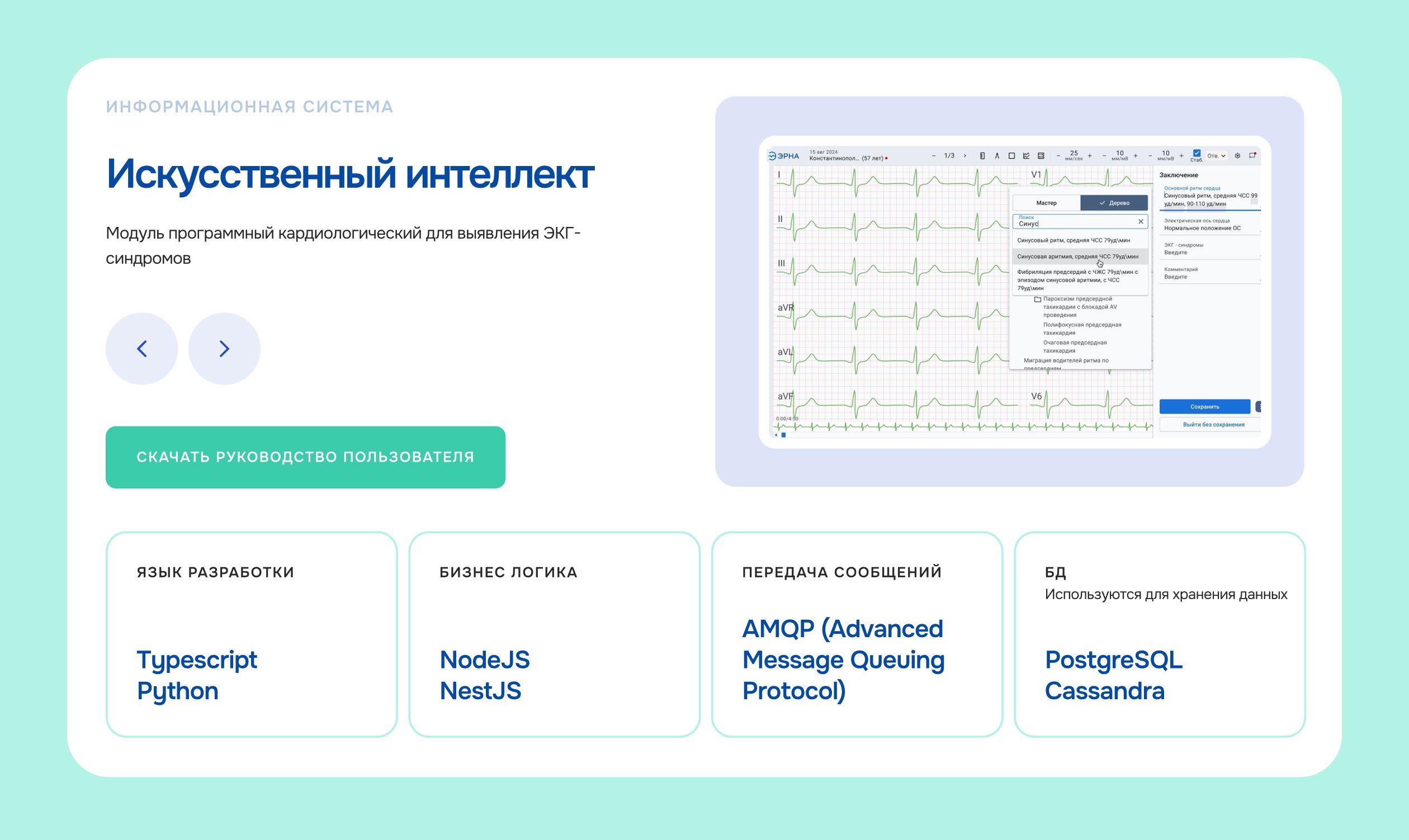 Описание продуктов. У каждой технологии на сайте есть своя страница. Сделали интерфейс современным и дружелюбным — на карточках рассказали важную информацию о продуктах и наглядно показали, как выглядит ПО.