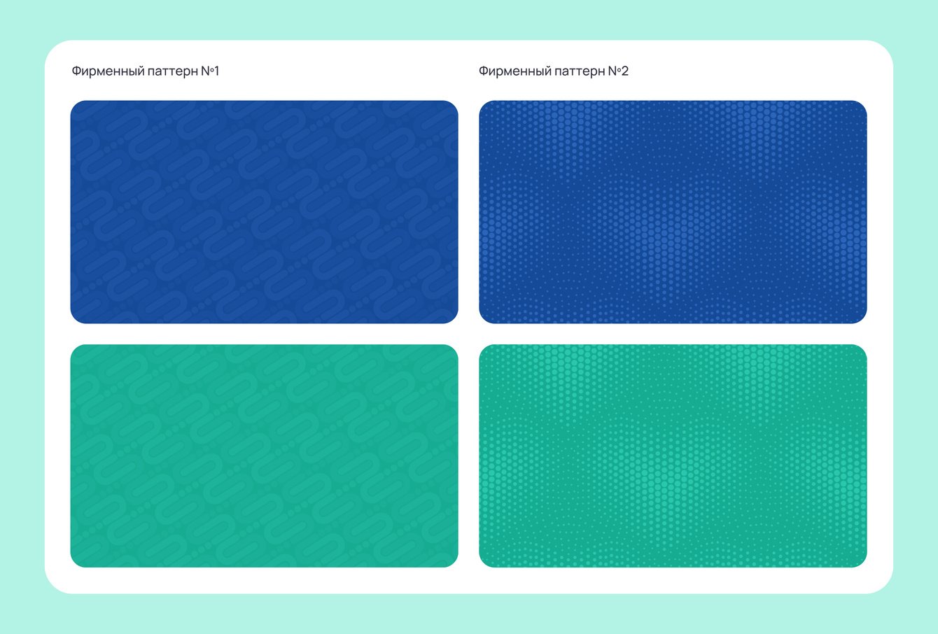 Разработали фирменный паттерн. Основу первого паттерна составляет повторяющийся графический знак в виде плавных изогнутых линий с точечными элементами. Графическая основа второго паттерна представляет собой сетку упорядоченных точек, создающих эффект волнообразного ритма.