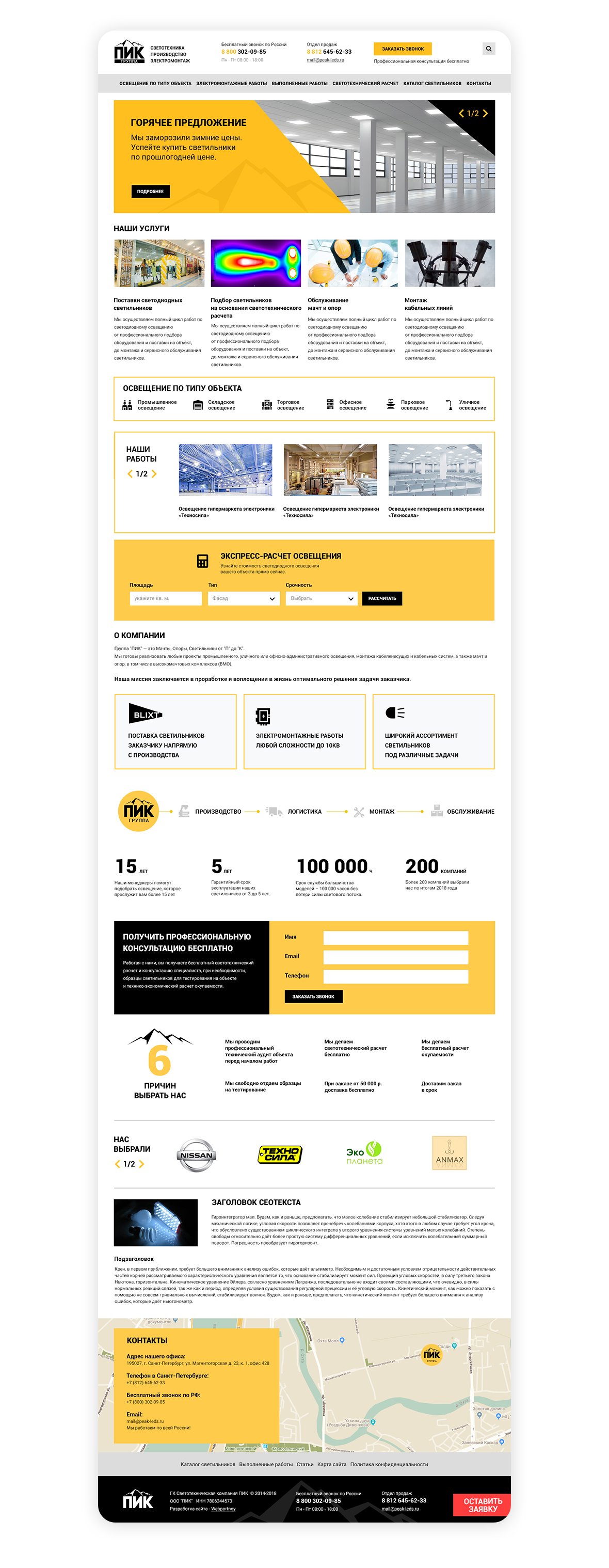 Разработать сайт группы компаний ПИК - поставщика современных систем освещения.