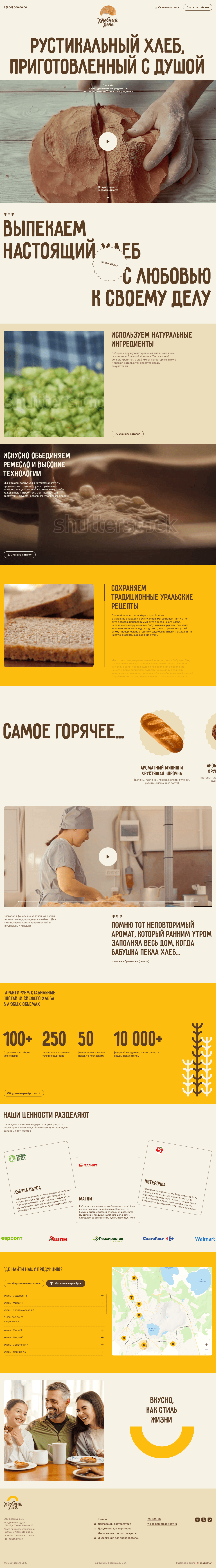 Заказчик обратился с целью разработать сайт, который бы презентовал продукцию хлебозавода под брендом "Хлебный День" и донести до потребителя и потенциальных партнёров основные ценности.