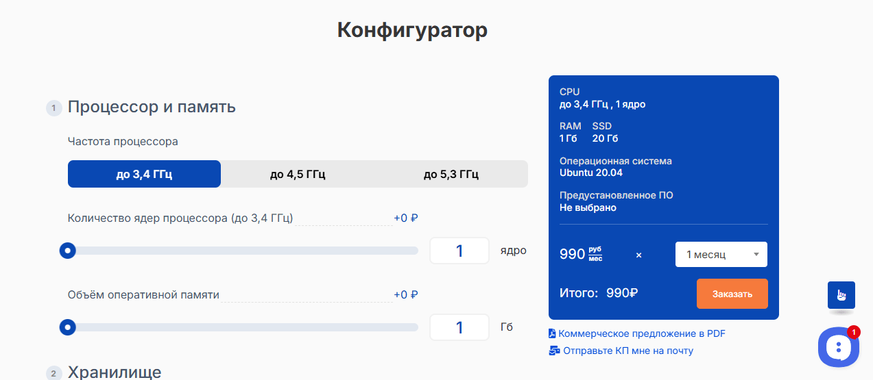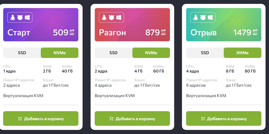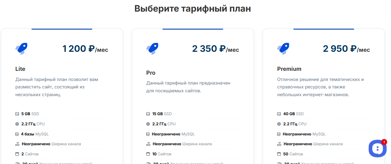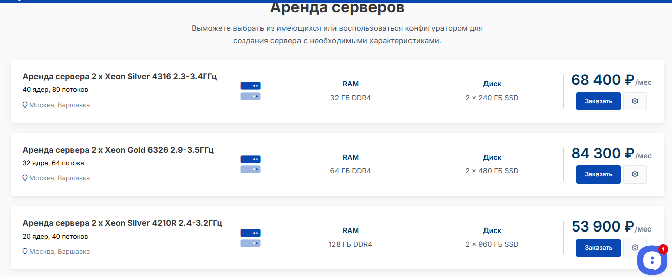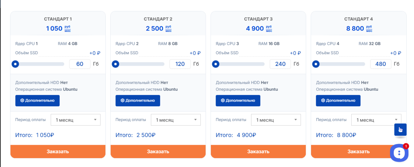 Для каждого типа предоставления хостинга: виртуальный хостинг, VPS / VDS и аренда стойки, разработаны отдельные готовые тарифы + детальный конфигуратор.