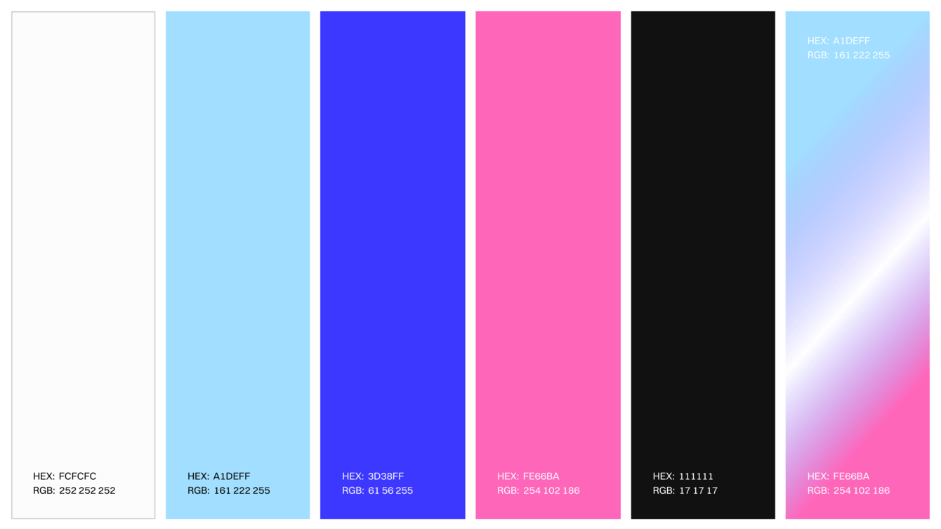 Основной цветовой акцент Monite — синий, который выделяется в цветовой палитре, придавая дизайну уверенность и стабильность. Также используются градиенты от светло-голубого к розовому, которые создают плавные переходы и добавляют глубину и динамику. Весь брендинг выполнен в светлой теме, что подчеркивает чистоту и минимализм, а черный текст обеспечивает контраст и хорошую читаемость.