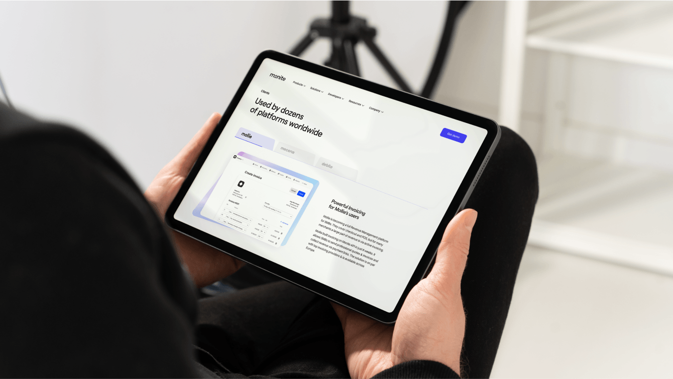 Создать динамичные фирменный стиль и сайт для Monite — лондонско-берлинского финтеха, который помогает B2B платформам — необанкам и вертикальным SaaS стать супер-приложениями, автоматизируя выставление счетов, управление расходами и B2B-платежи