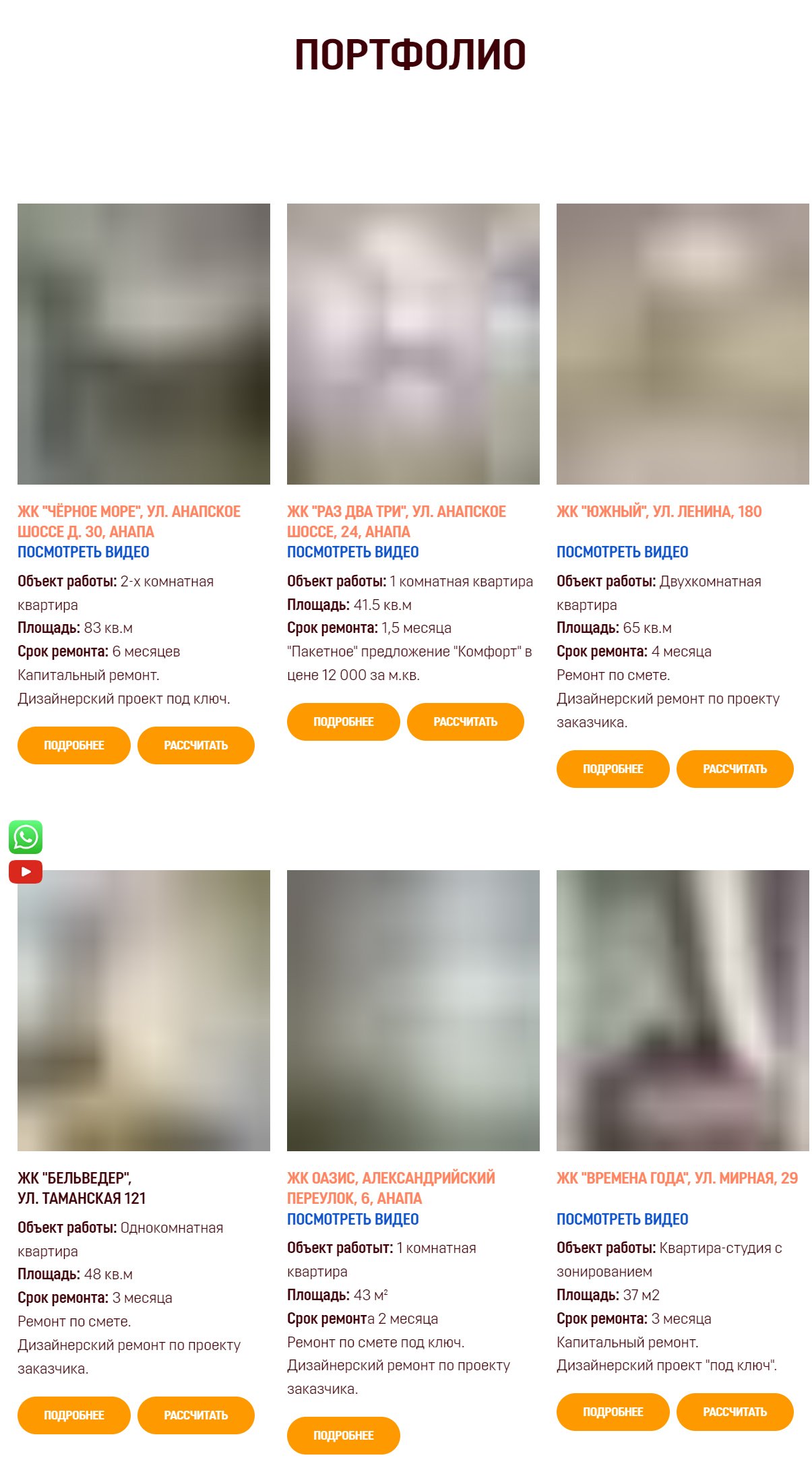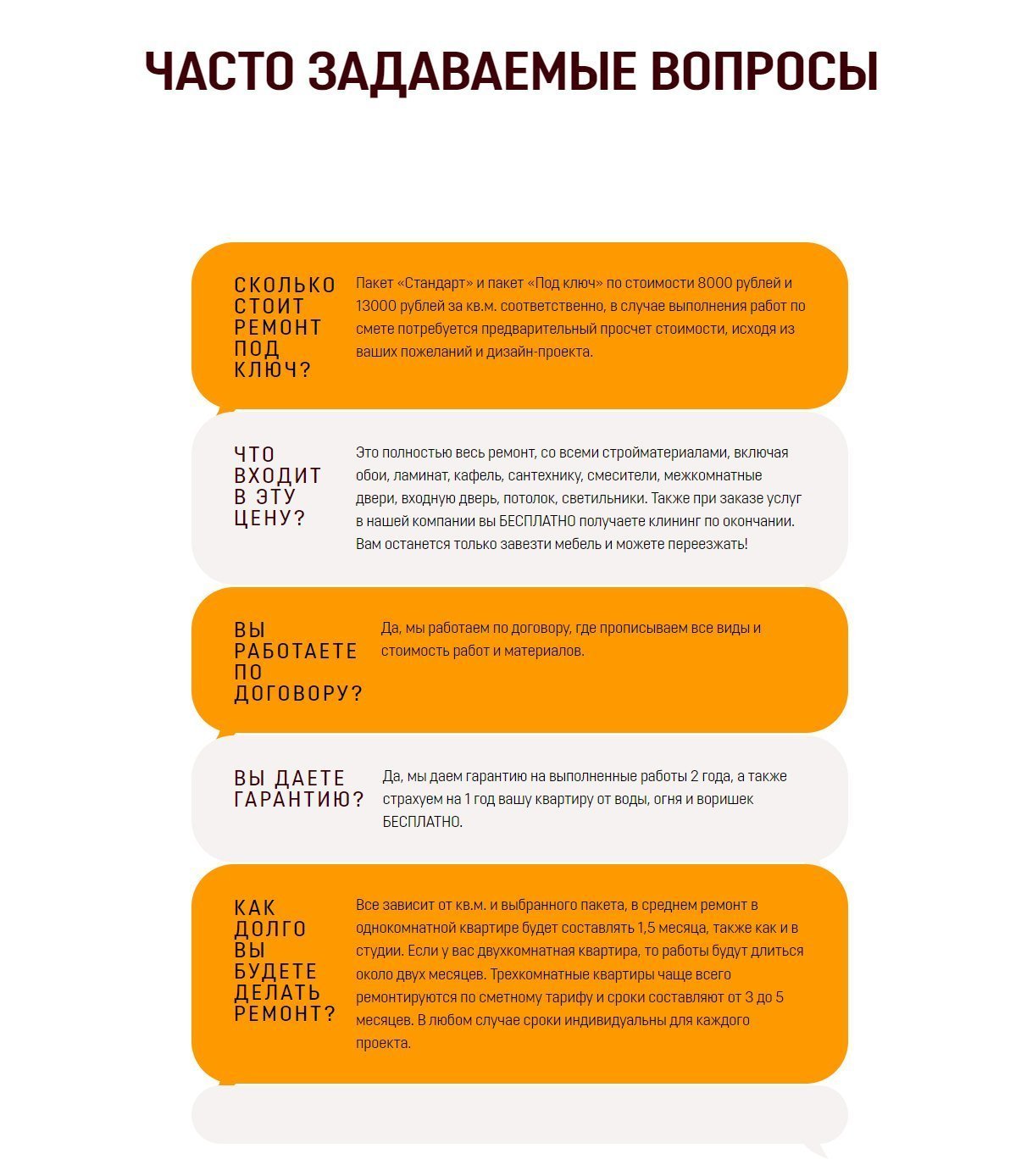 Мы структурировали всю информацию по блокам, так, чтобы потенциальным клиентам было всё понятно. Мы смогли оформить сайт так, чтобы вызывать доверие в такой сложной сфере в этом плане, как в ремонте.