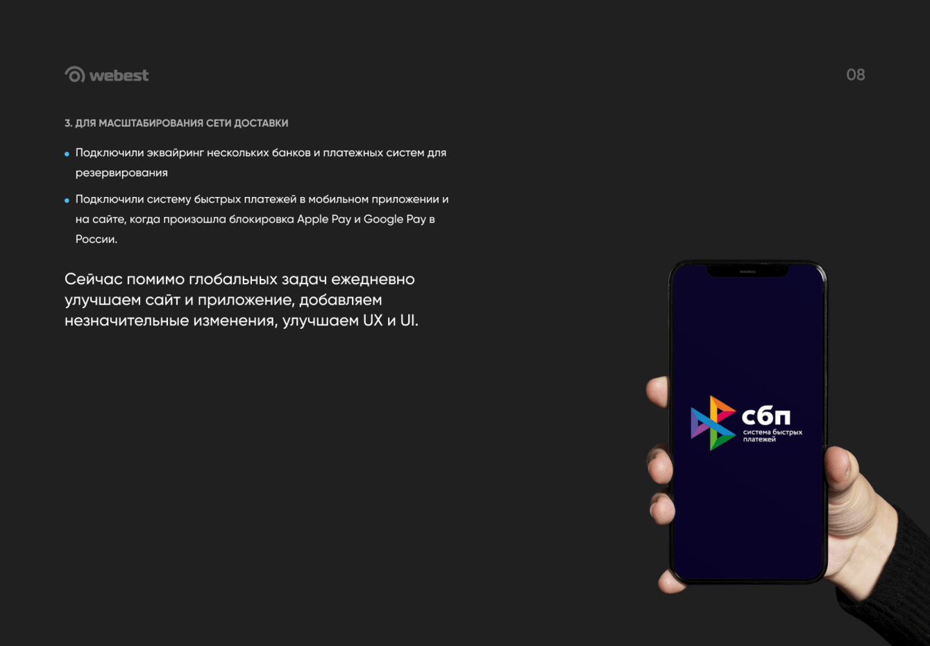 — Подключили систему быстрых платежей в мобильном приложении и на сайте, когда произошла блокировка Apple Pay и Google Pay в России.