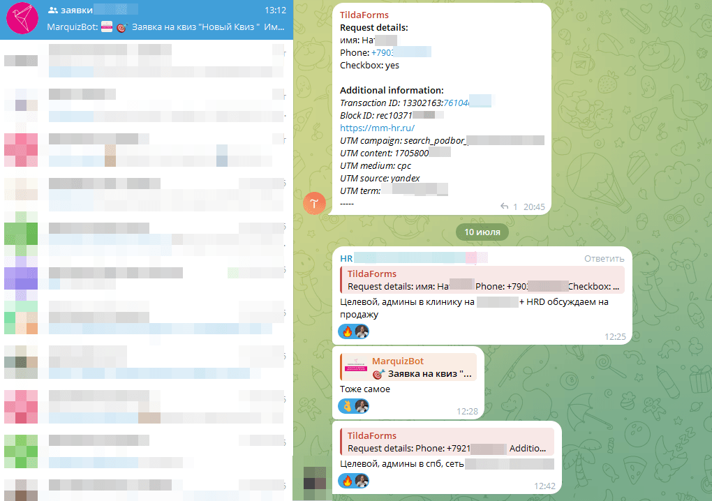 - Автоматические уведомления менеджеру и в частной ТГ-группе