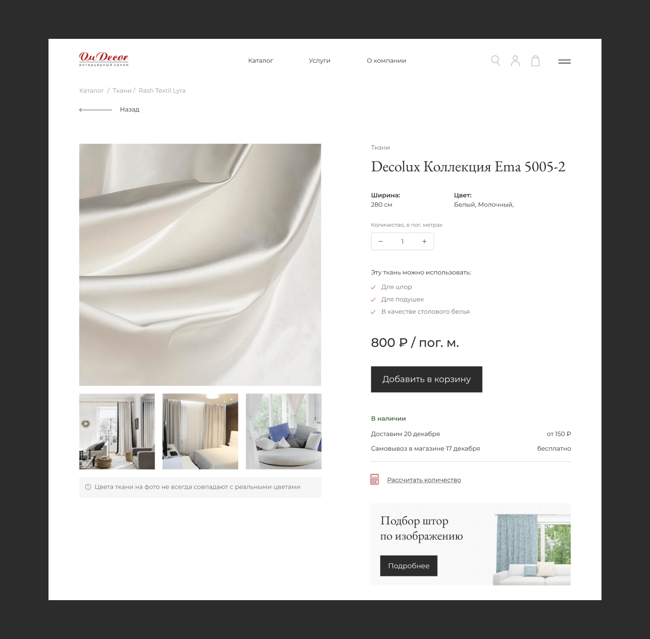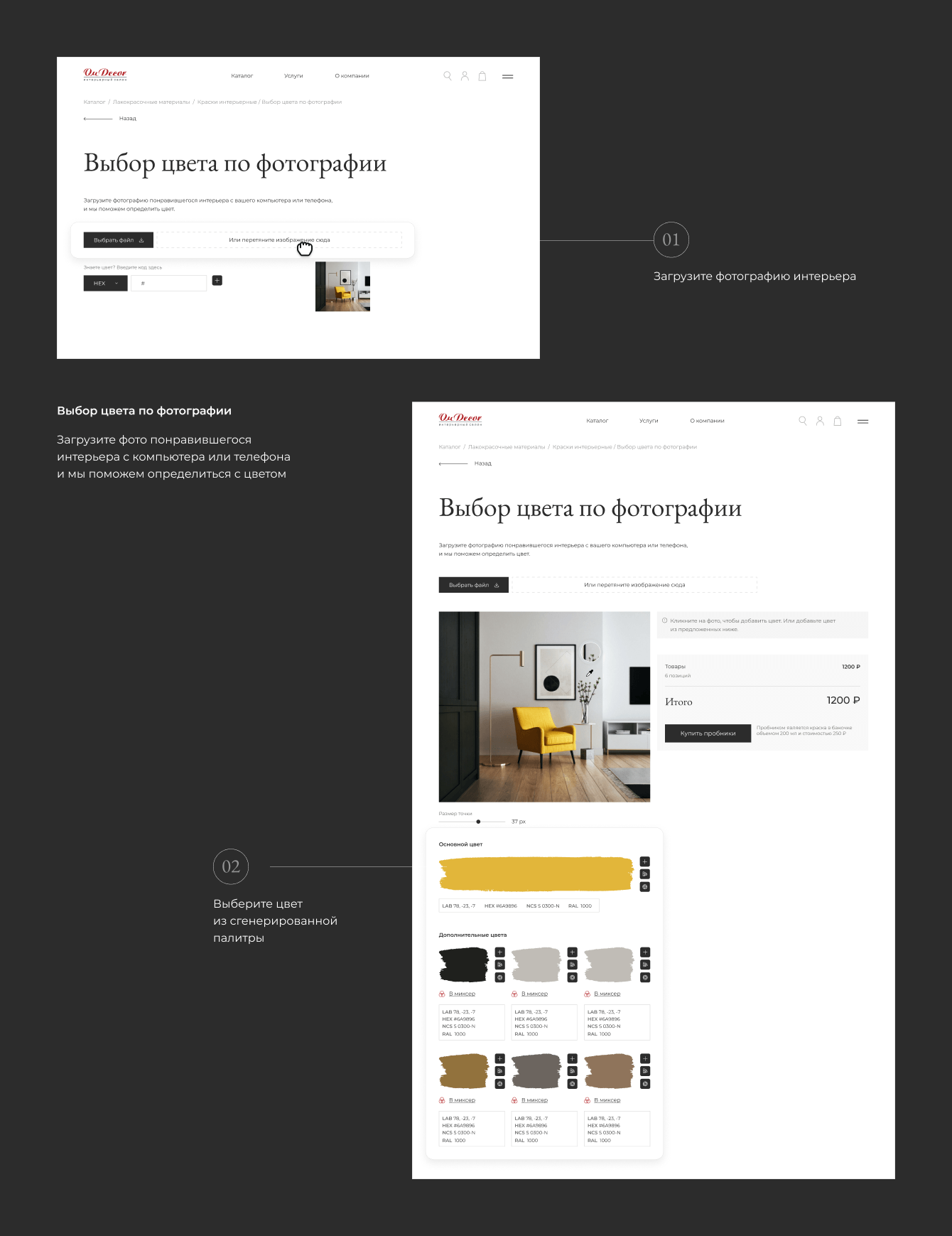 Основной задачей была реализация возможности ориентировать пользователя на покупку даже при условии, что у него нет четкого понимания своих желаний. Для этого были проработаны новые алгоритмы поведения пользователя на сайте, добавлены различные услуги, помогающие с выбором — например, сервис по выбору цвета краски по загруженной фотографии, услуга по подбору штор по фотографии окна и так далее.