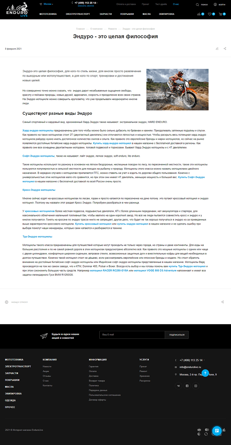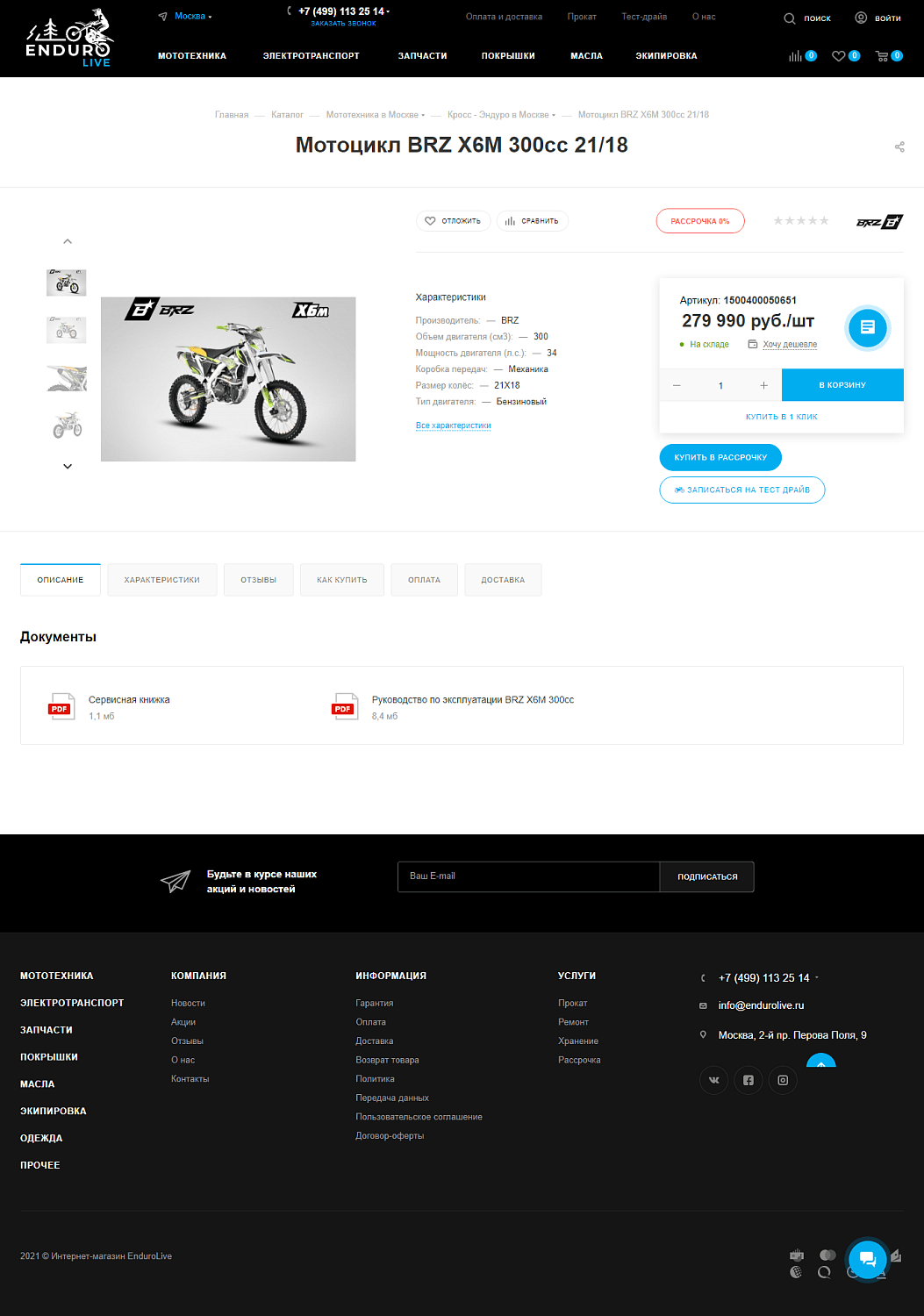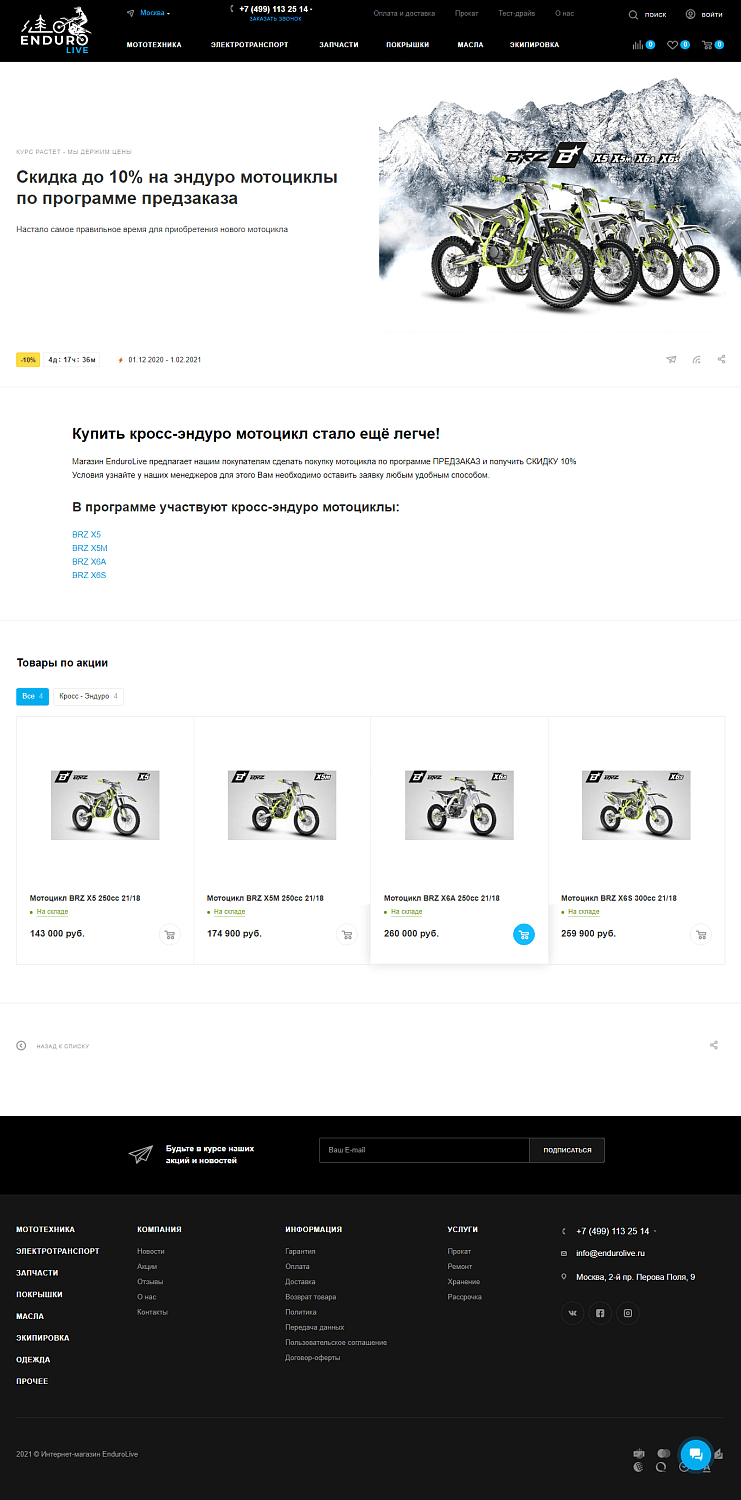 Разработка магазина для мотоциклов и мопедов от ведущих производителей.