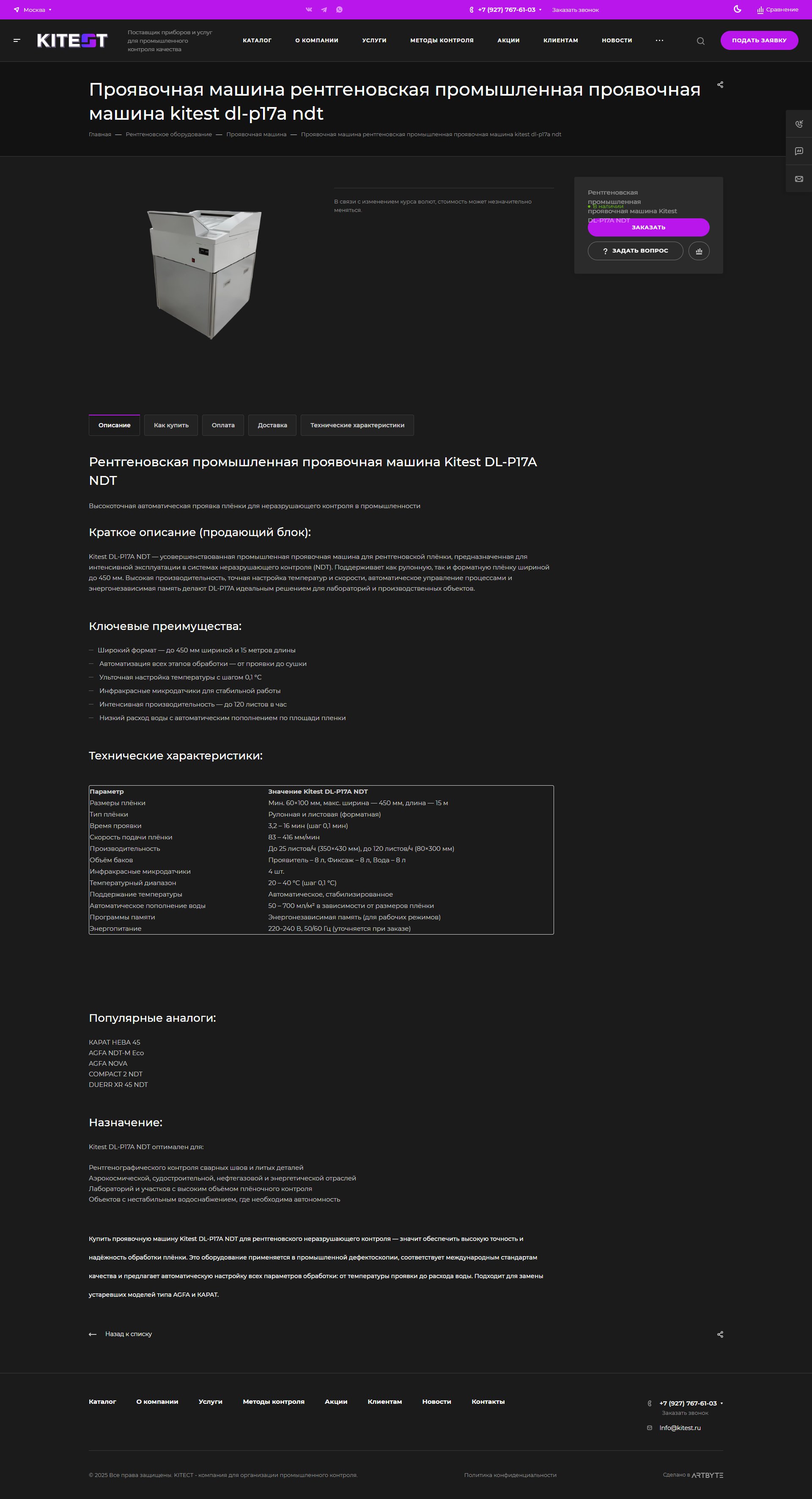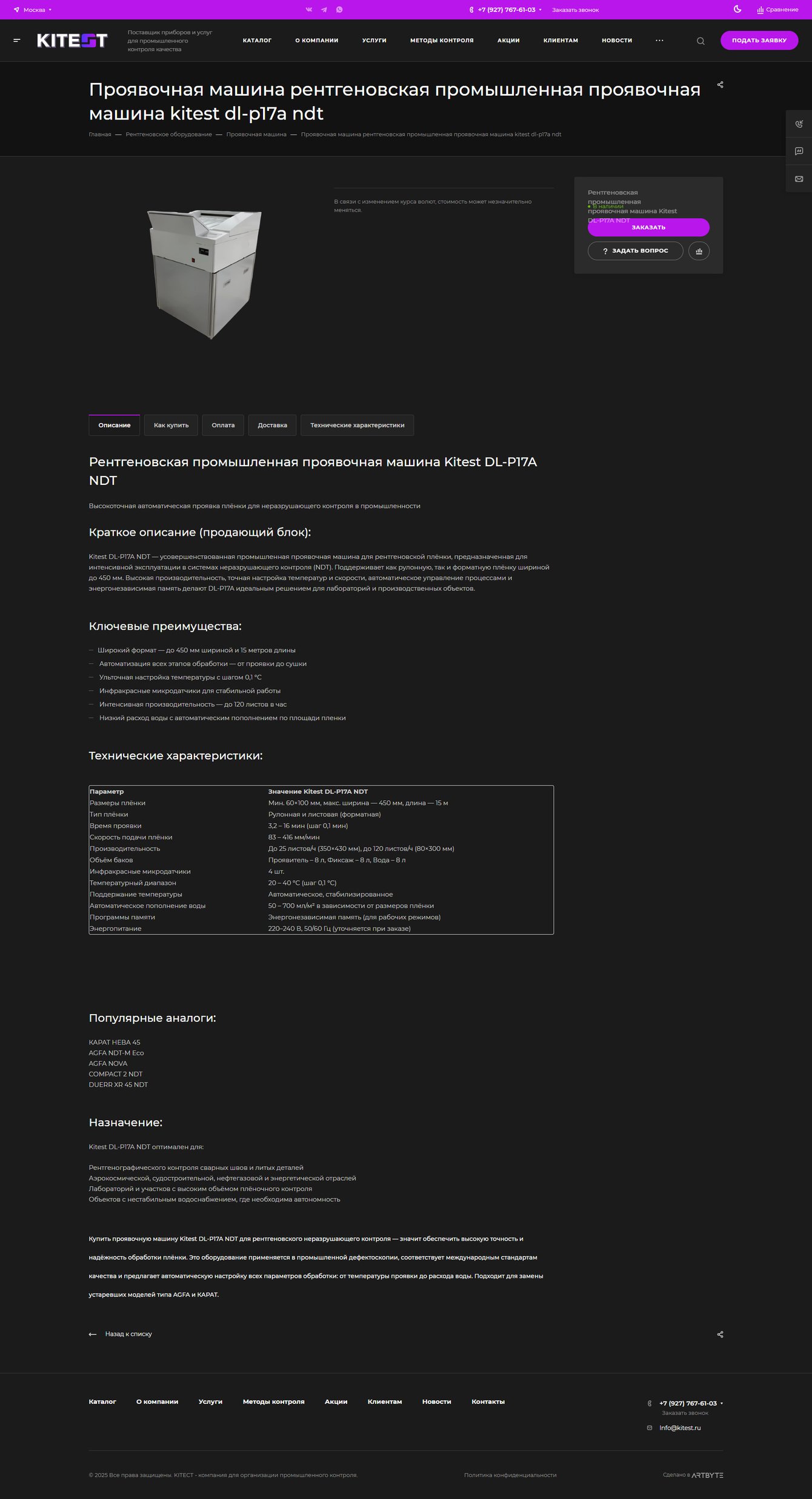 Клиенты компании KITEST оценили надежность, качество и оперативность, с которой решаются запросы. Компанию ценят за безупречный сервис на всех этапах работы — от консультации до поставки и обслуживания оборудования.