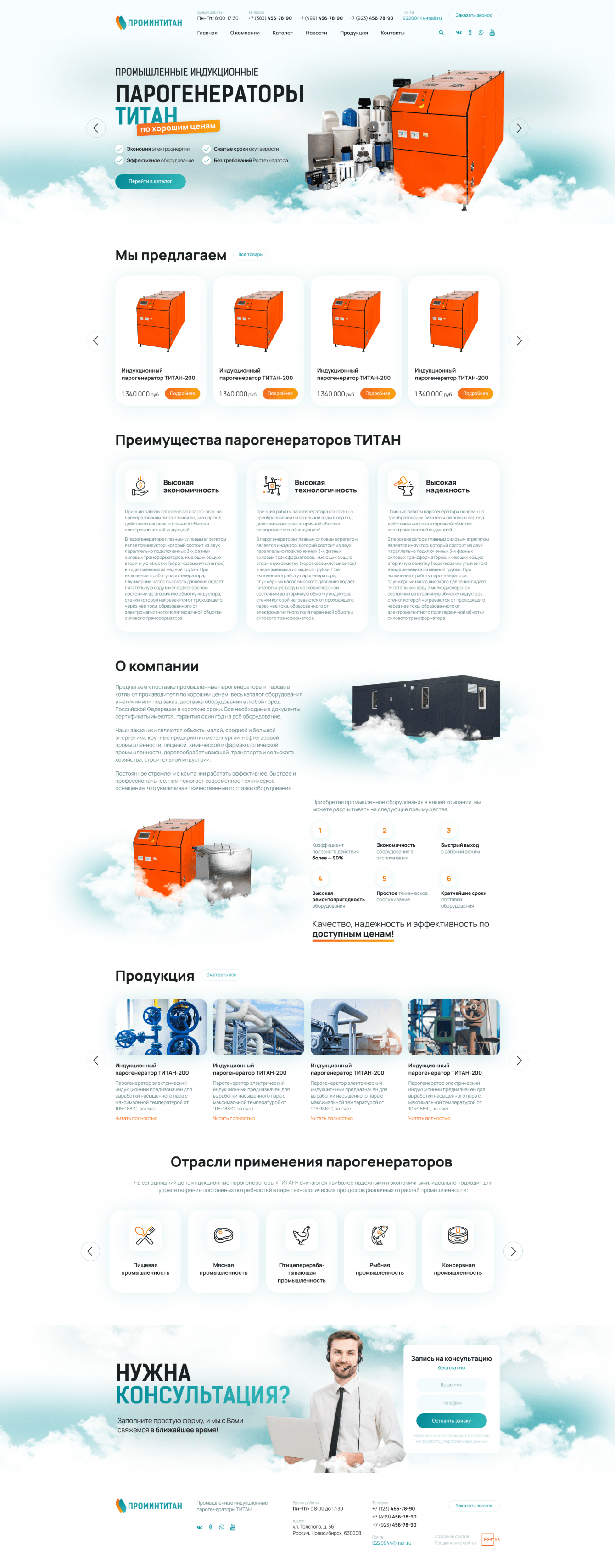 Верстка и программная часть были выполнены согласно ТЗ с размещением всех необходимых разделов и категорий сайта. Добавлена информация о компании, новостях, продукции и т.д. Заполнены 10 тестовых карточек товара.