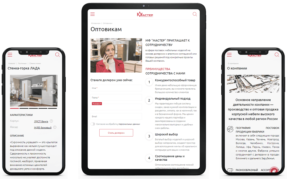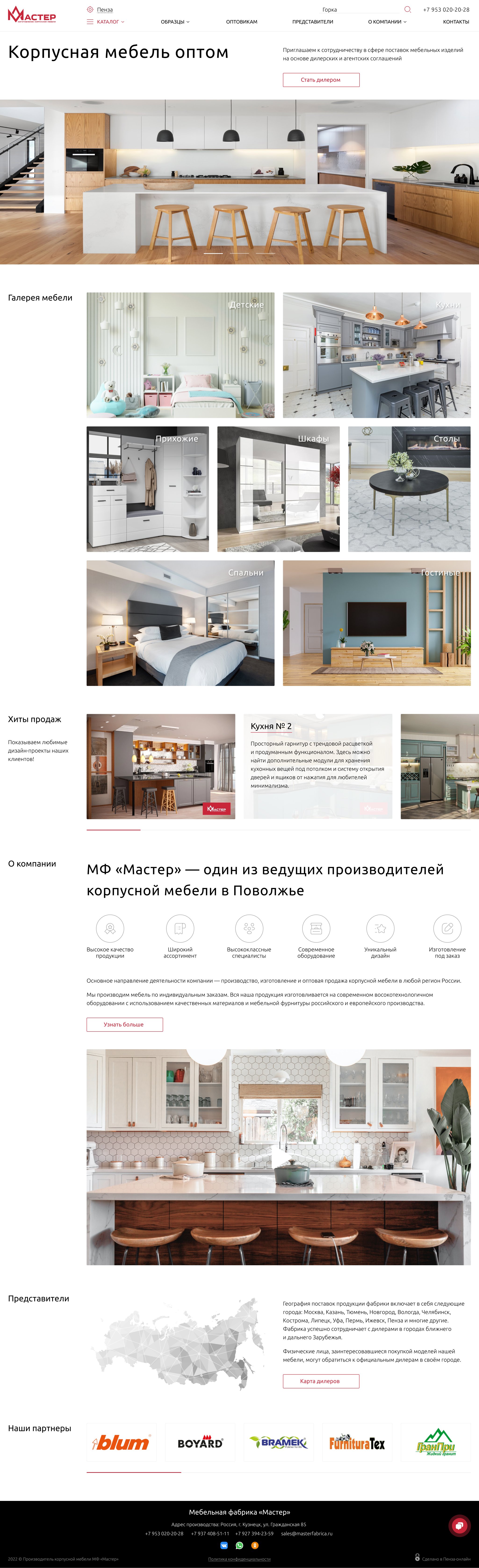 К нам обратилась мебельная фабрика «Мастер». Они специализируются на оптовых поставках мебели в разные регионы страны. Задачей было создание сайта-визитки с каталогом их продукции, для привлечения новых представителей.