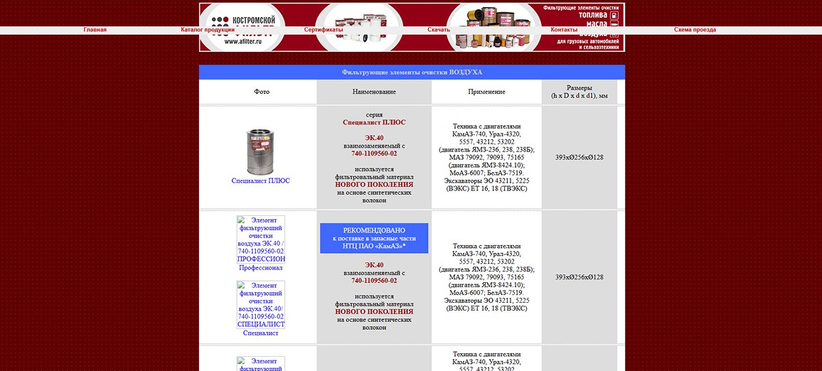 Это была интересная и амбициозная цель. Компания «Автофильтр» занимает одно из ведущих мест в производстве автомобильных фильтров в России и СНГ. Более шести десятилетий предприятие удерживает позиции, внедряет новые технологии и расширяет ассортимент. Важно было показать не только богатую историю — например, запуск уникальных фильтров из древесной муки ещё в 1961 году, — но и подчеркнуть, что завод идёт в ногу со временем: современное оборудование, новые материалы, широкий выбор продукции. Мы понимали, что сайт должен одновременно транслировать надёжность и инновационность.
