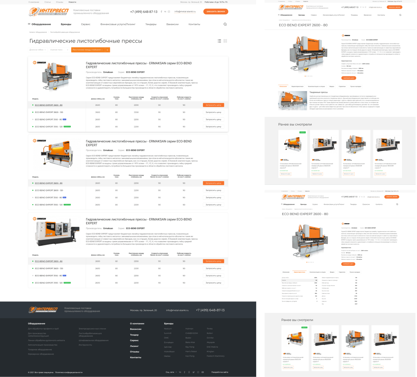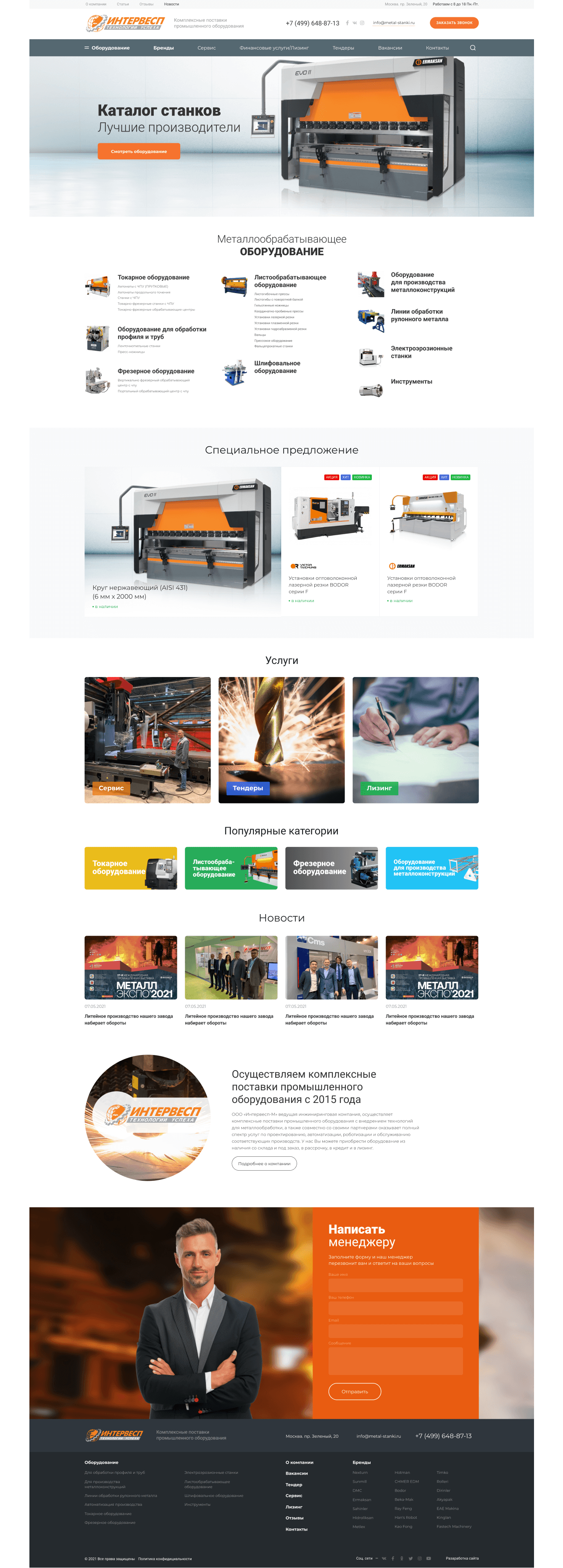 В итоге убрали почти 50% текста, вывели основные категории станков и спец.предложения по оборудованию, добавили открытую форму обратной связи, минимизировали информацию в хедере и футере.