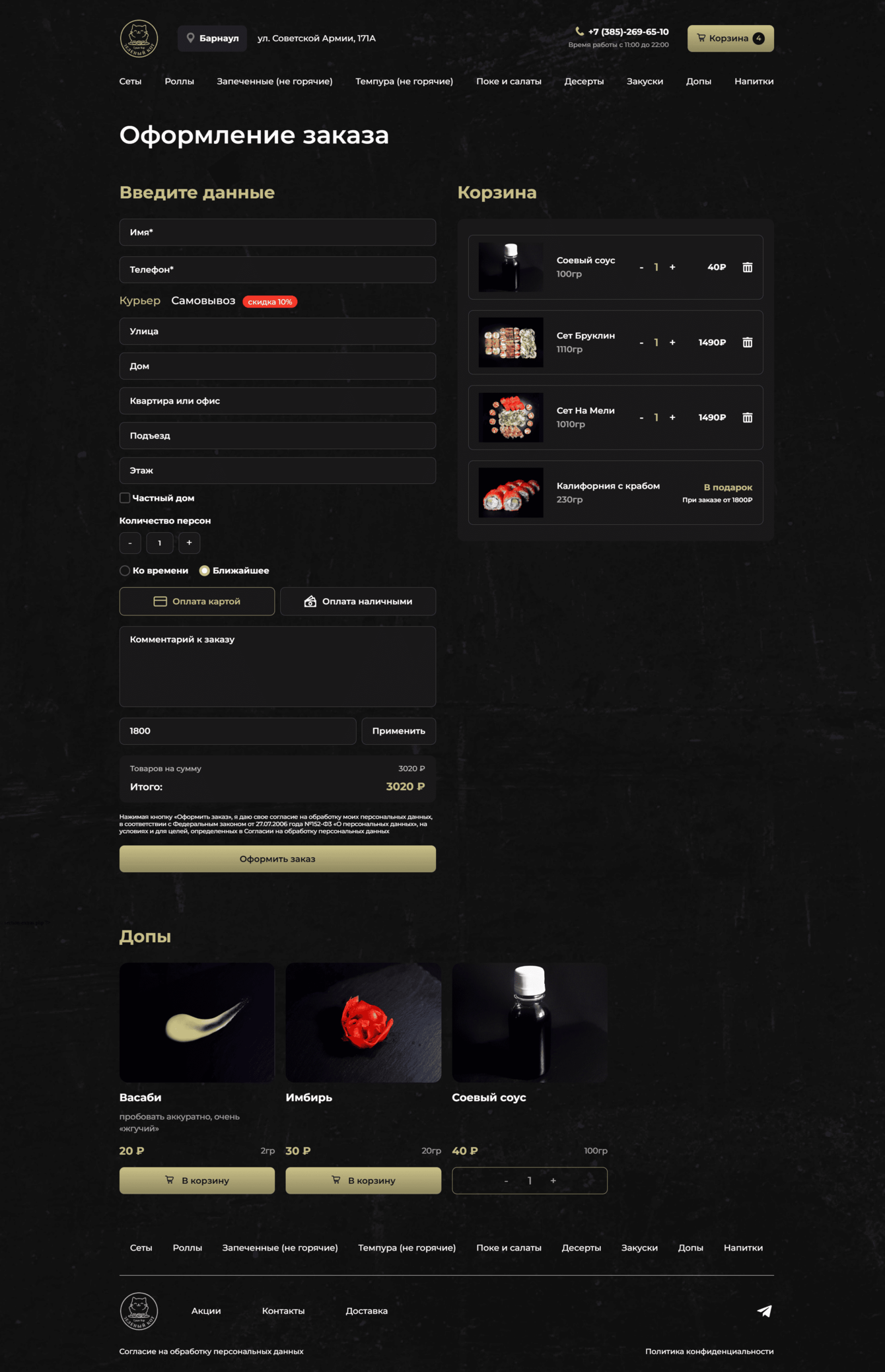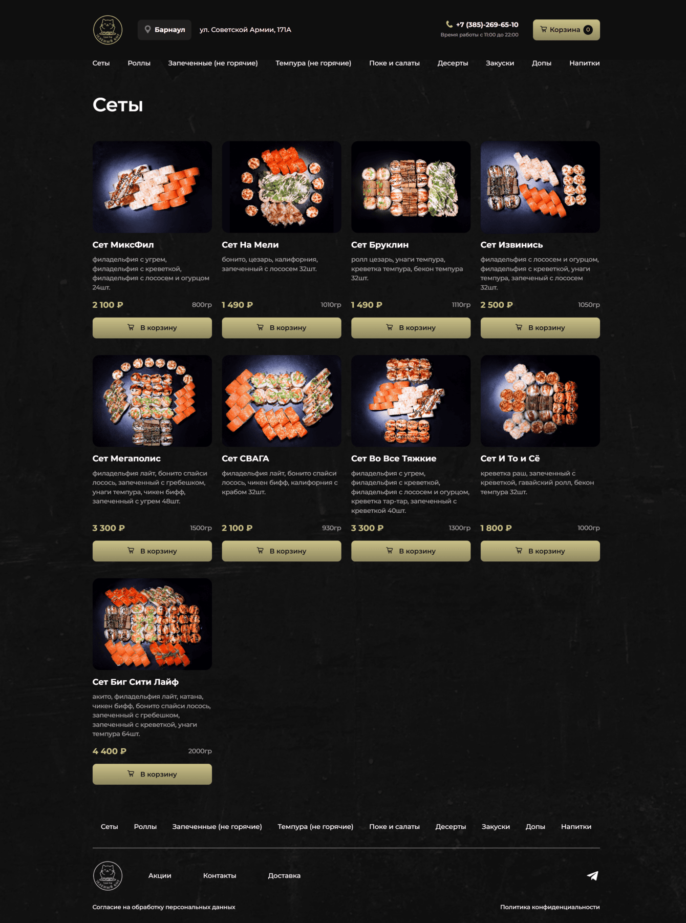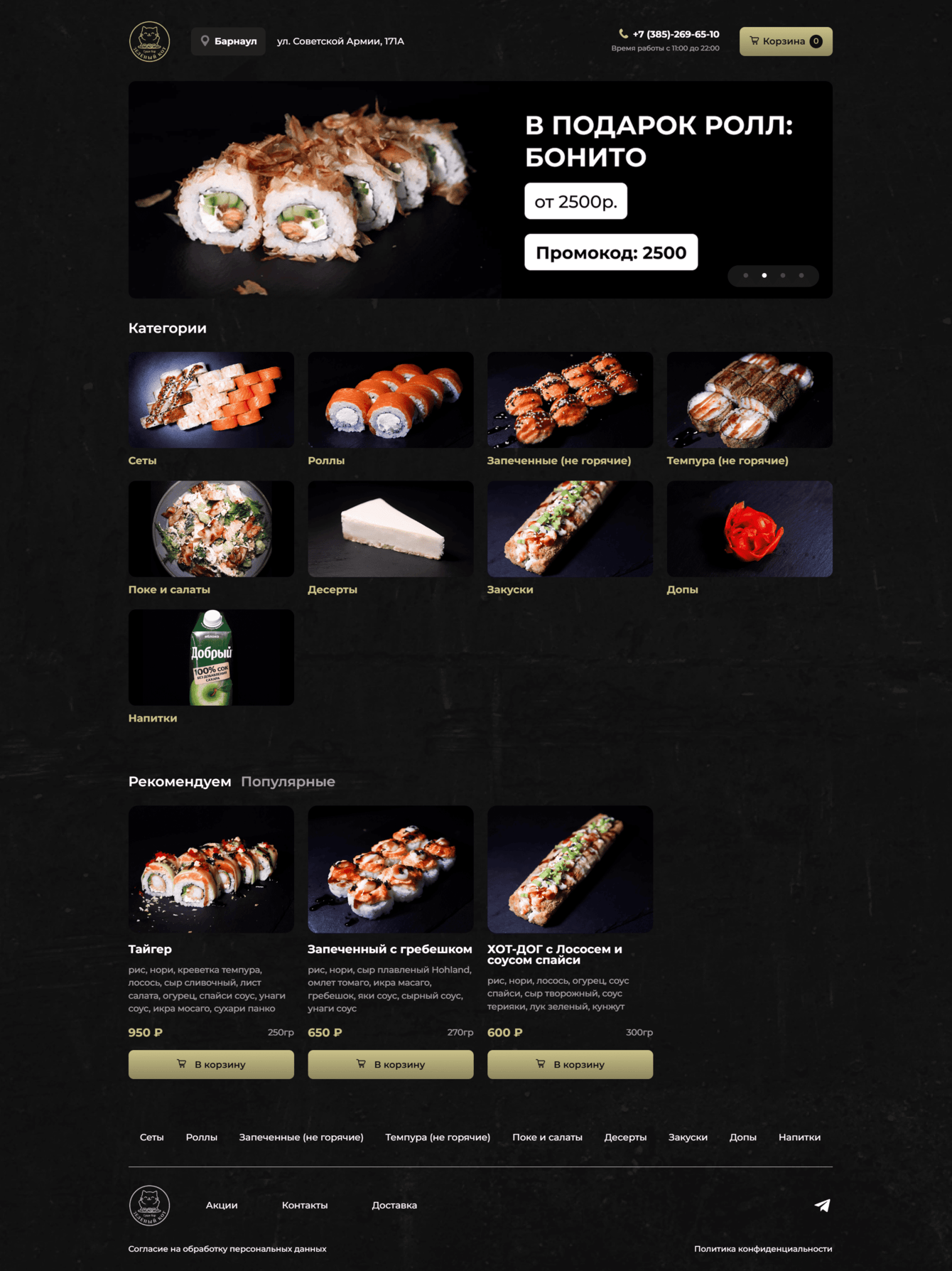 Проект: сайт-каталог с функционалом онлайн-заказа для “Зеленый Кот” (доставка роллов и суши)
