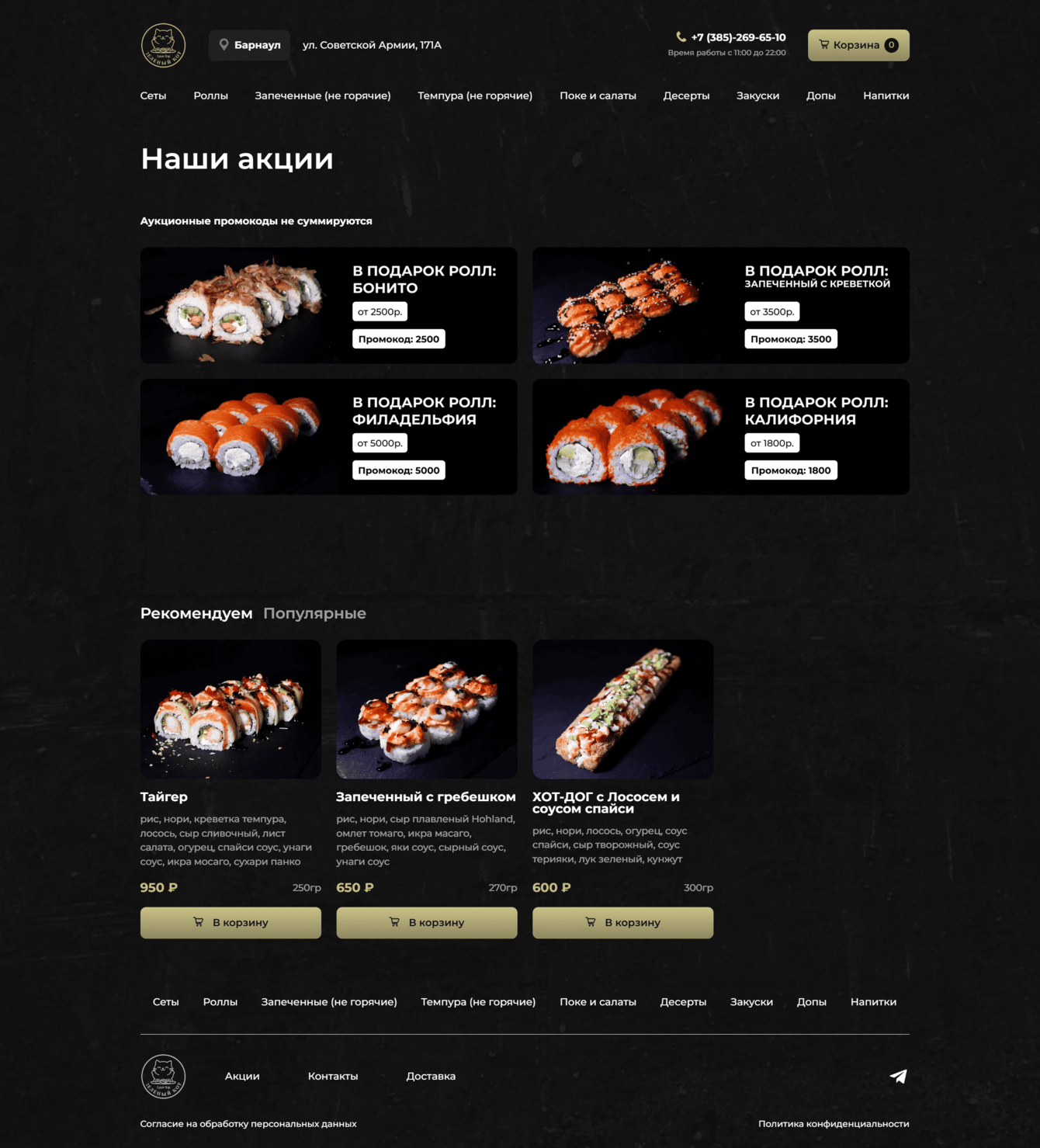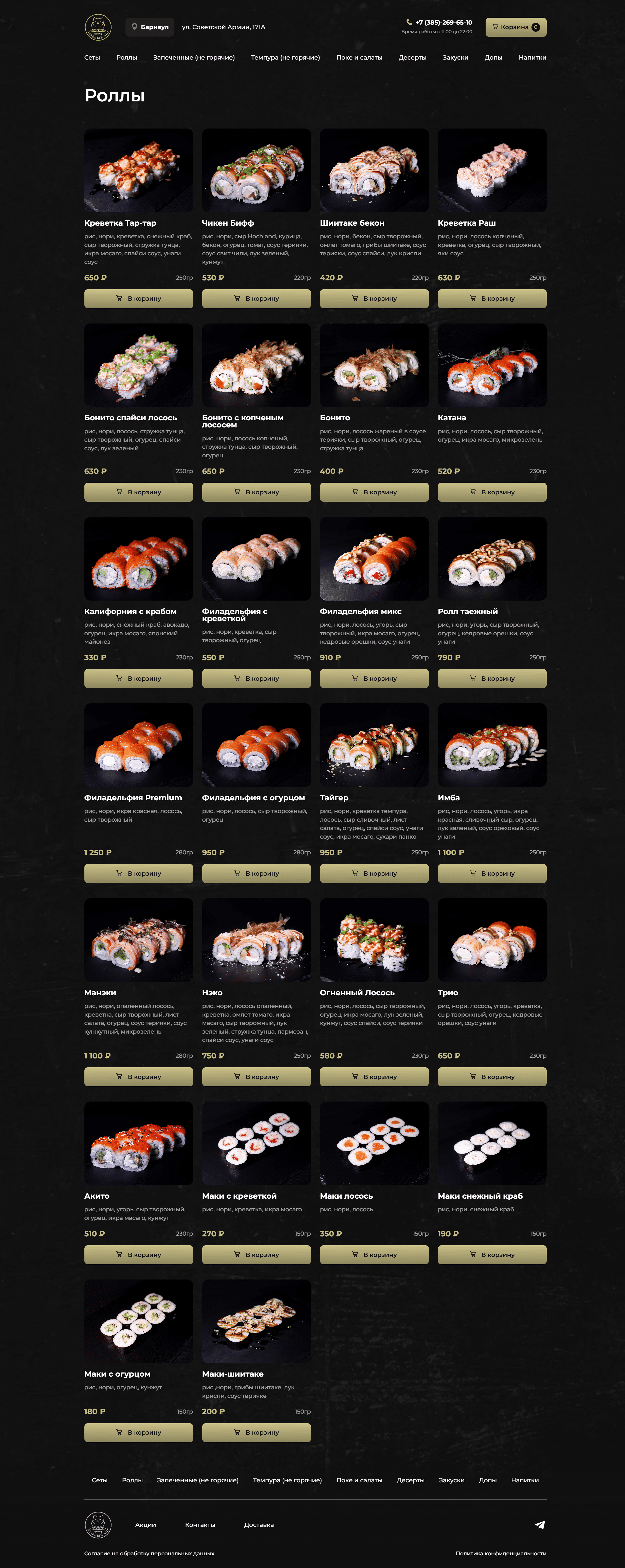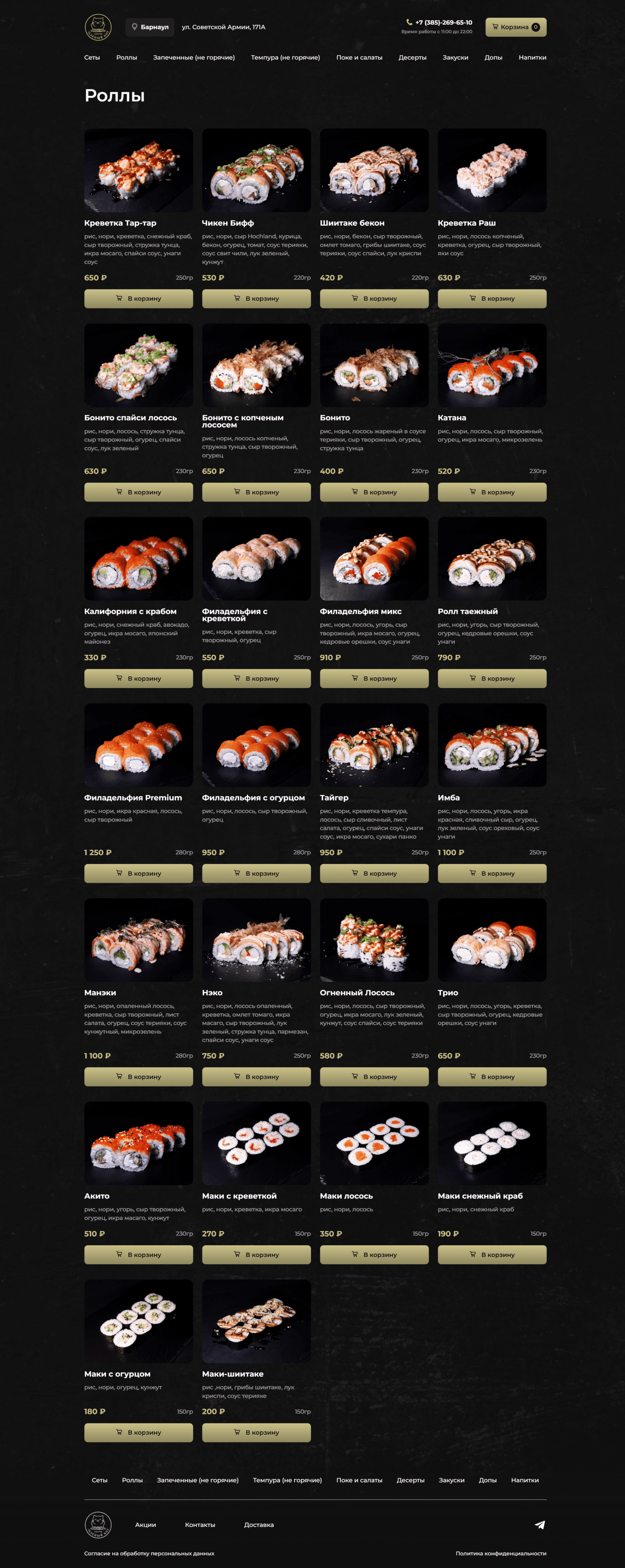 Проект: сайт-каталог с функционалом онлайн-заказа для “Зеленый Кот” (доставка роллов и суши)