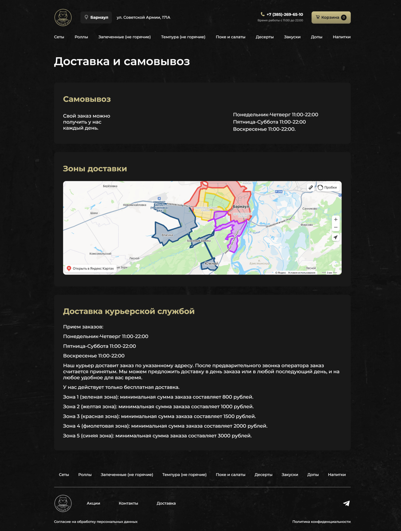 🔹 Реализовали интерактивную карту зон доставки с указанием минимальных сумм