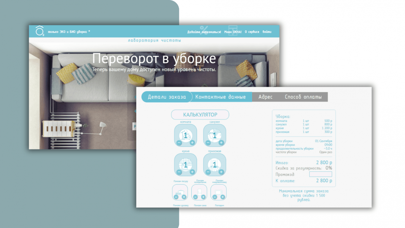 Сайт клининговой компании с возможностью подбора клинеров и расчета стоимости уборки.