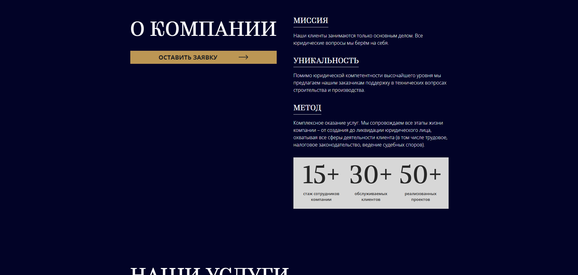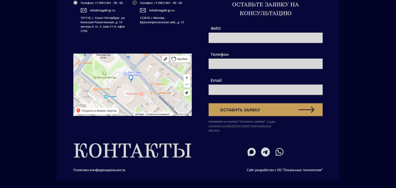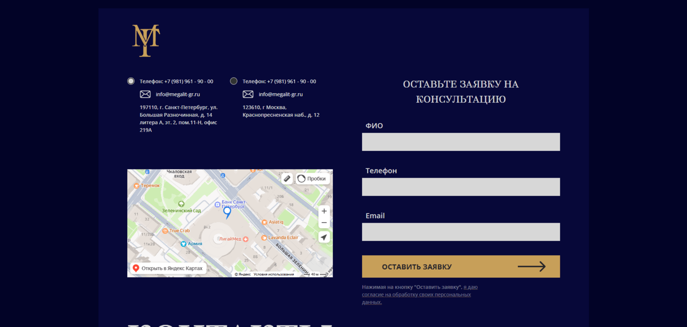 Был разработан сайт на JS, логотип и цветовая гамма а также были разработаны телеграмм и макс боты для приёма заявок и пересылки их в CRM компании