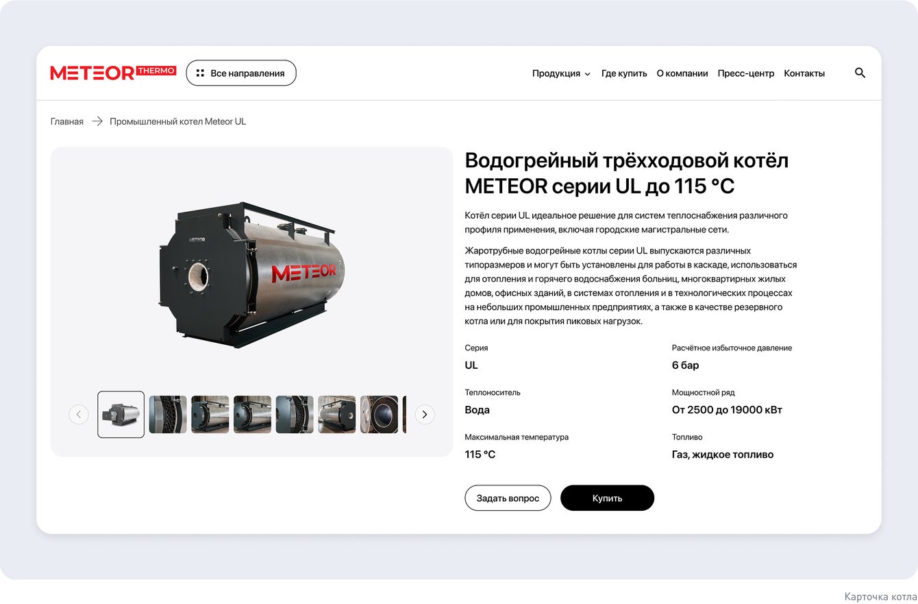 Компания “Синхро” разработала сайт для компании METEOR Thermo, были выполнены следующие задачи: