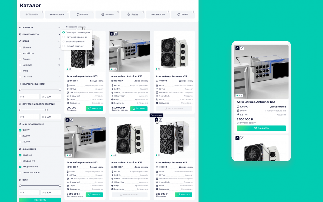 Создать специализированный онлайн магазин, целью которого является продажа качественного майнингового оборудования для добычи криптовалют.