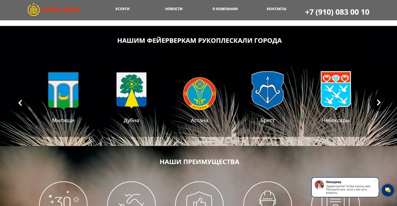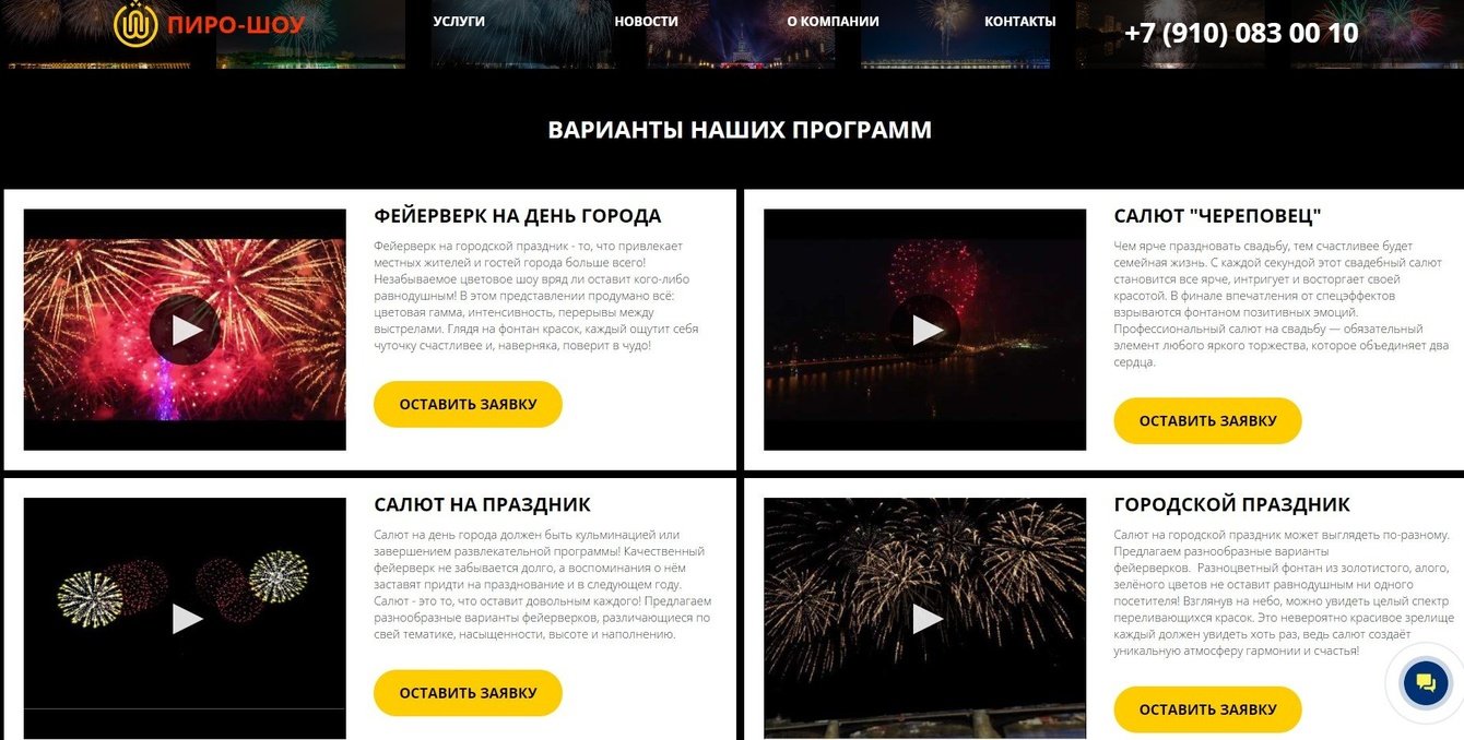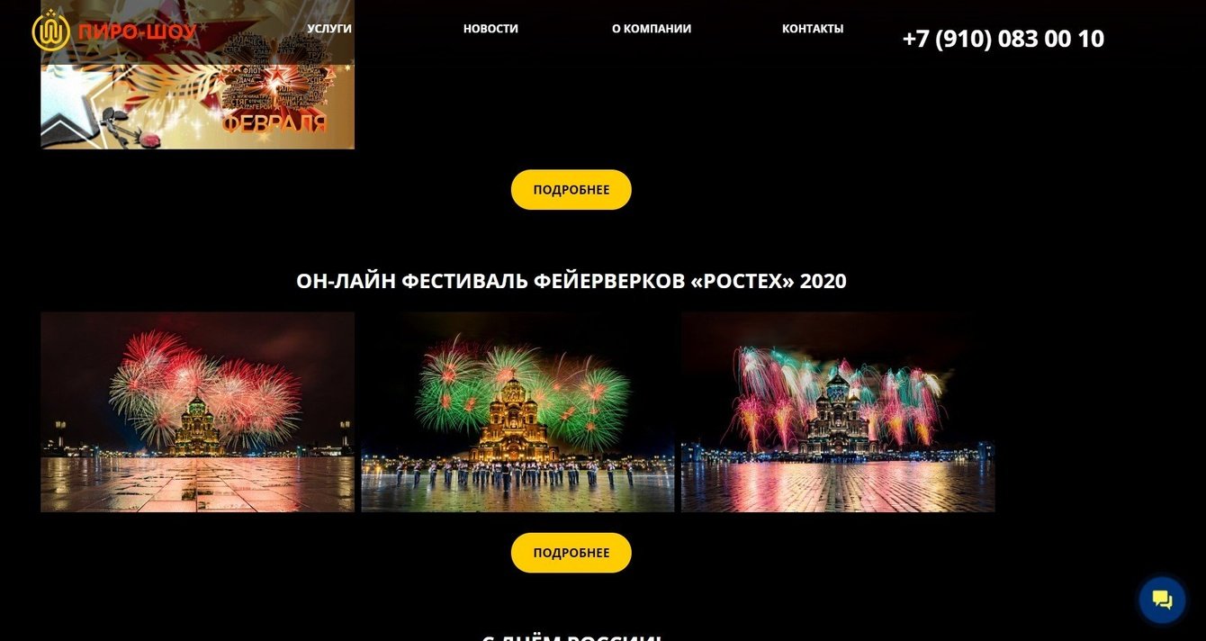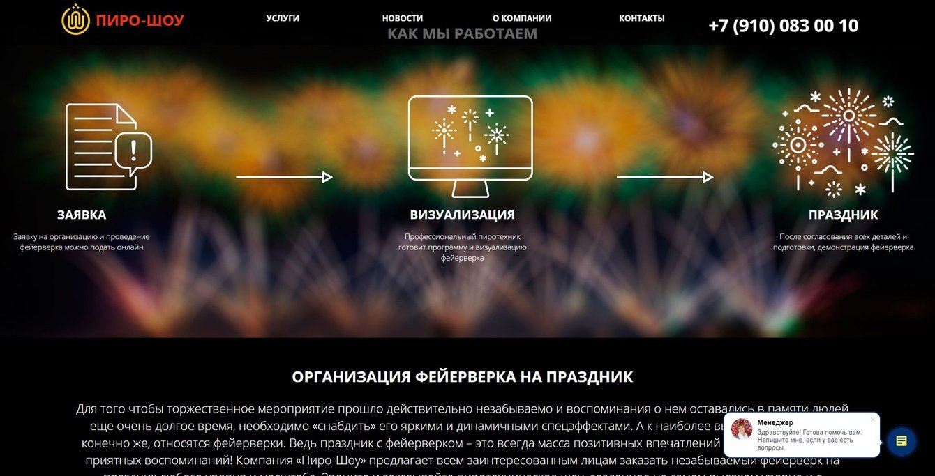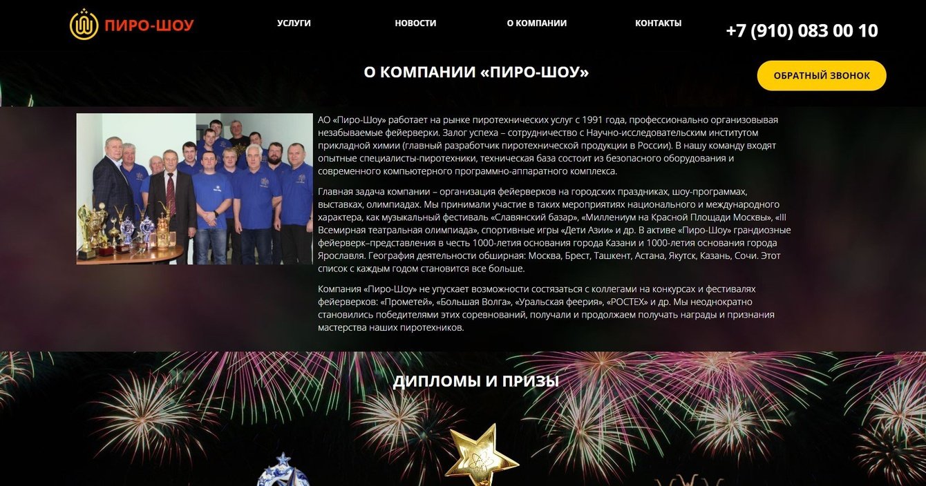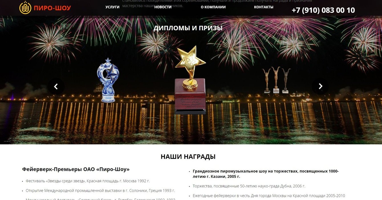 Сайт компании "Пиро-шоу" - визитная карточка организации. При разработке сайта был сделан упор на дизайн.