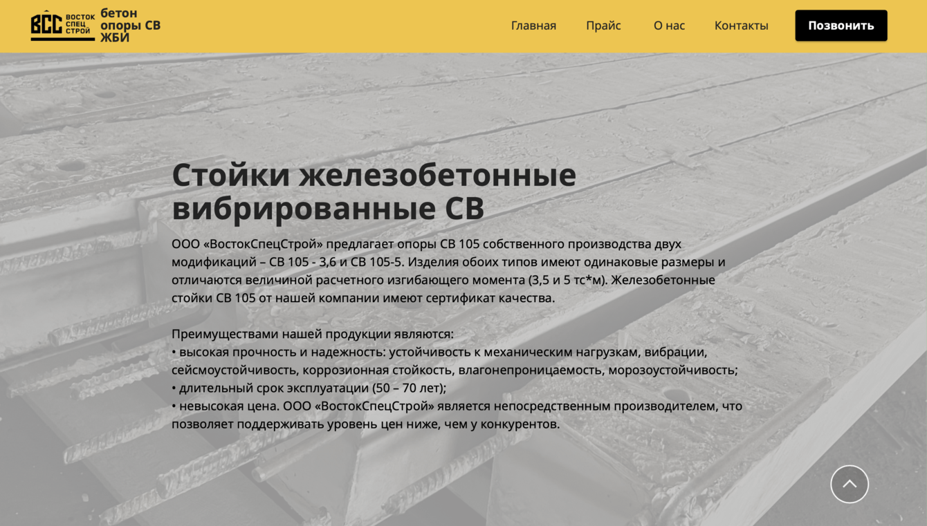 Клиент: компания "ВостокСпецСтрой", занимающаяся реализацией товарного бетона и железобенной изделий.