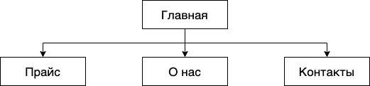 Мы изначально понимали, что структура сайта будет максимально простой, однако этот этап нам был необходим для определения количества страниц и их приблизительного содержания.