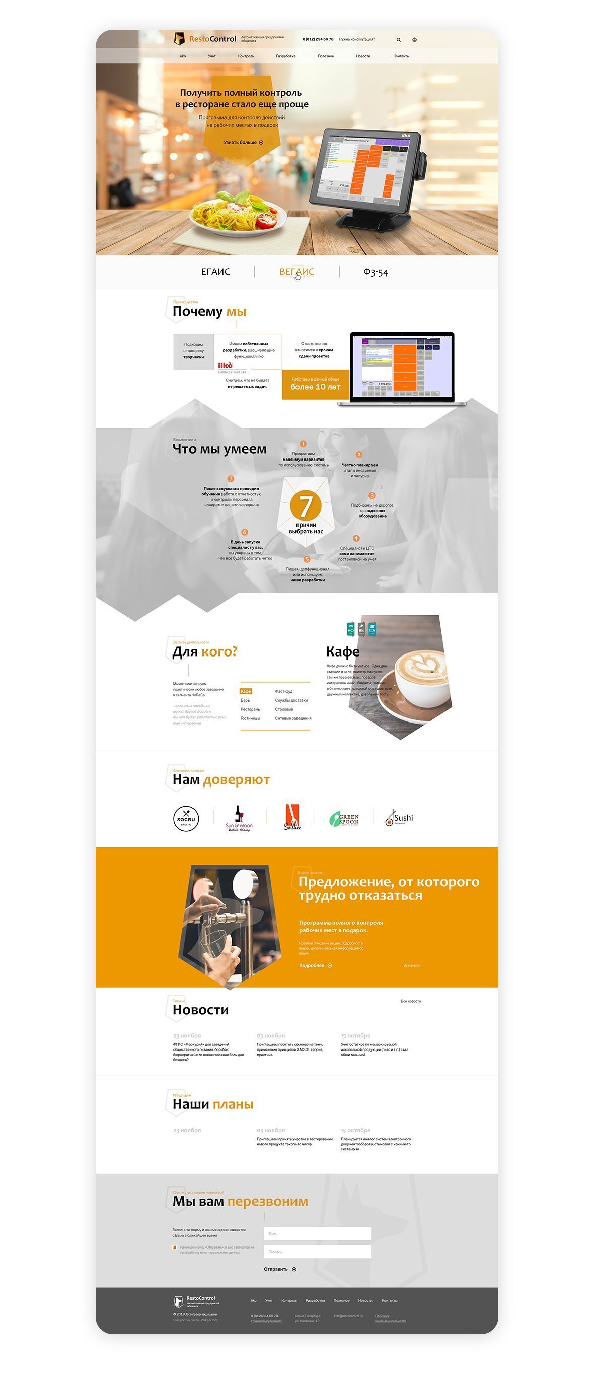 Задача: Разработать имиджевый сайт, демонстрирующий преимущества работы с компанией RestoControl и системой автоматизации iiko.