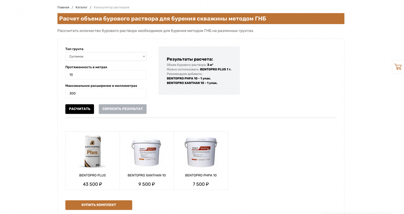 Калькулятор буровых растворов с автоматической подборкой товаров для клиентов