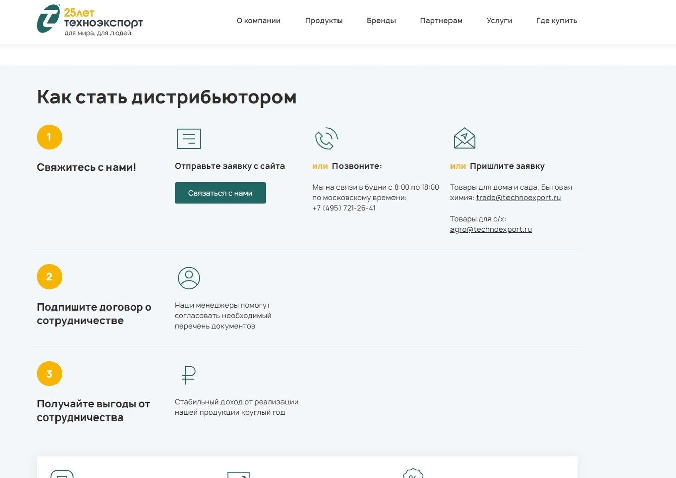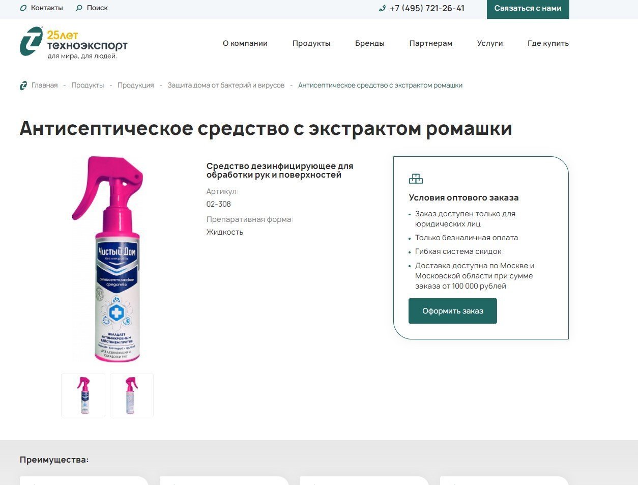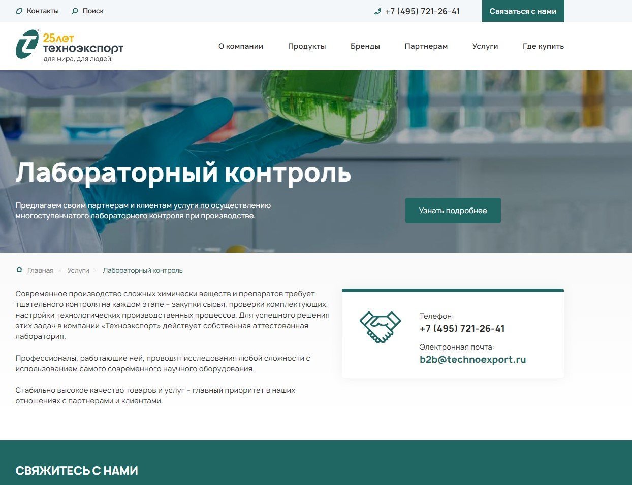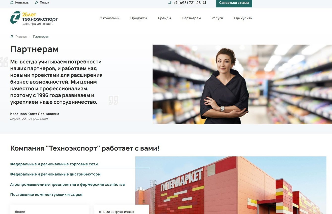 Сайт компании "Техноэкспорт" - это не только "лицо" омпании, но и витрина товаров, ресурс для получения информации о производстве, способах сотрудничества и других ресурсах.