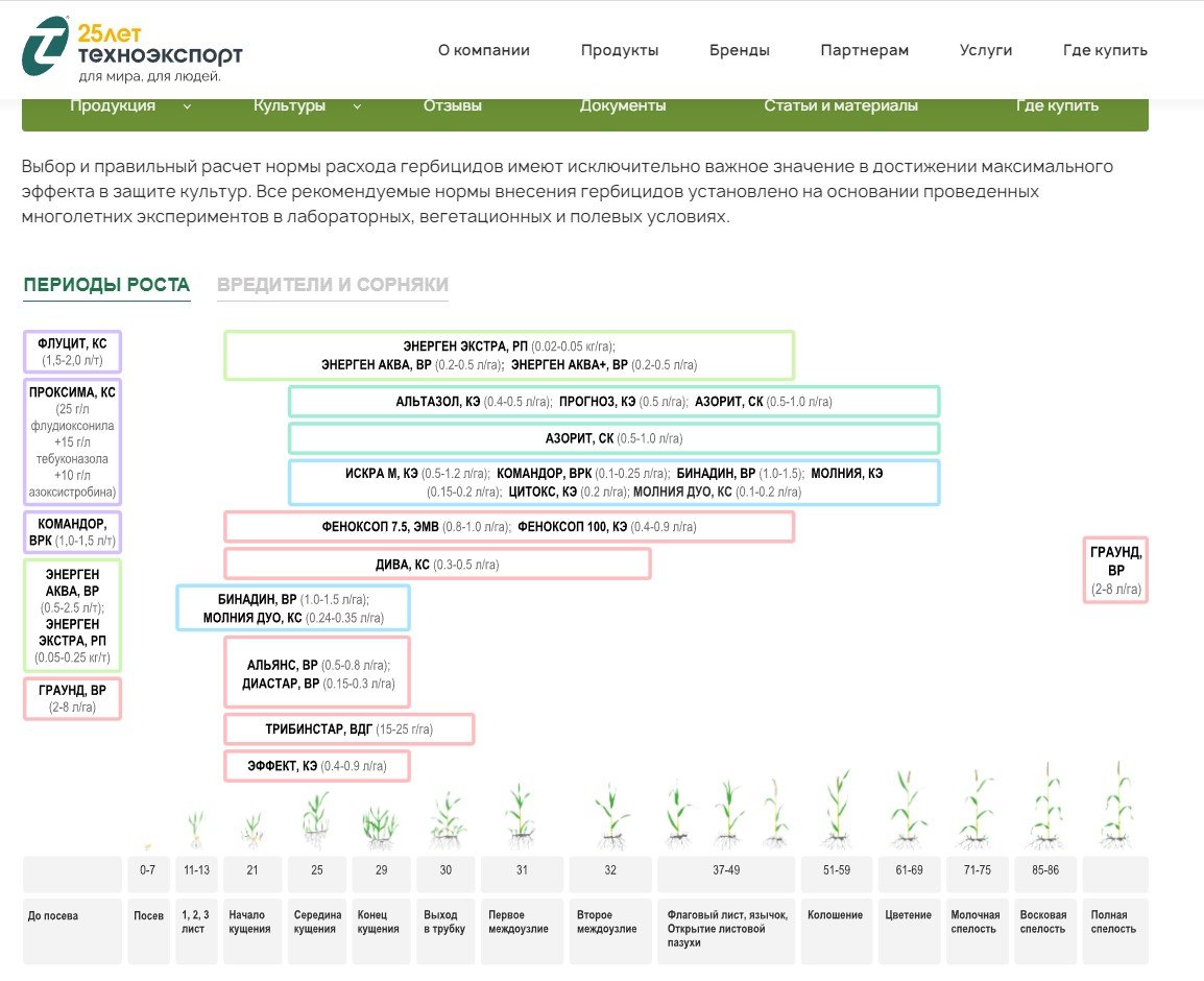 Для каждой отрасли разработан свой максимально удобный вид каталога с фильтрацией по бренду, типу препарата, вредному объекту или сельскохозяйственной культуре. Реализованы калькуляторы для расчета количества препаратов поплощади и схемы применения препаратов по этапам роста культуры.