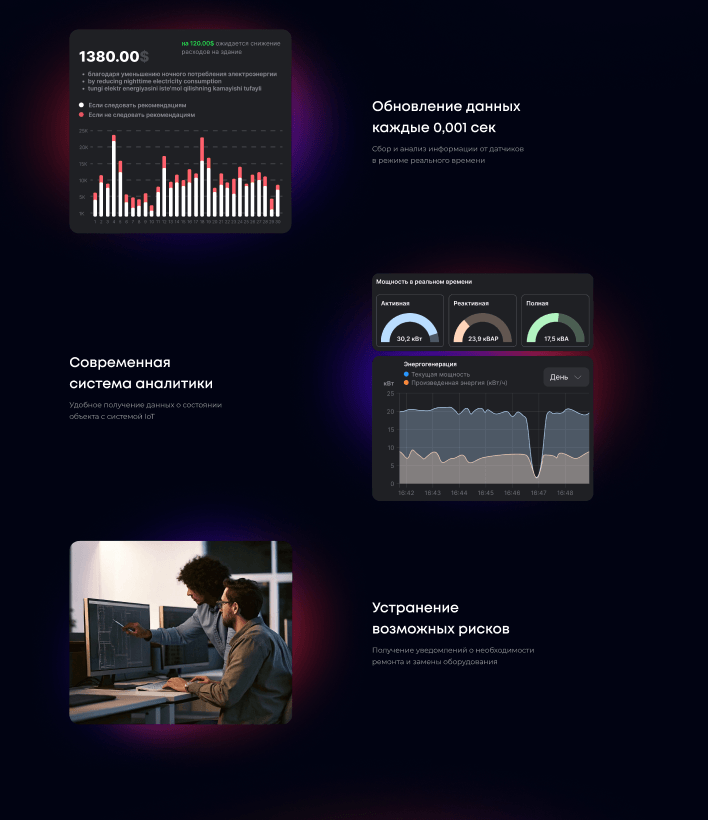 Главному экрану: Сильный оффер с формулировкой ключевой выгоды и четким CTA («Рассчитать экономию», «Заказать пилот»).