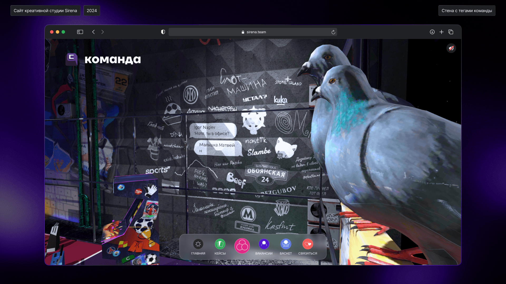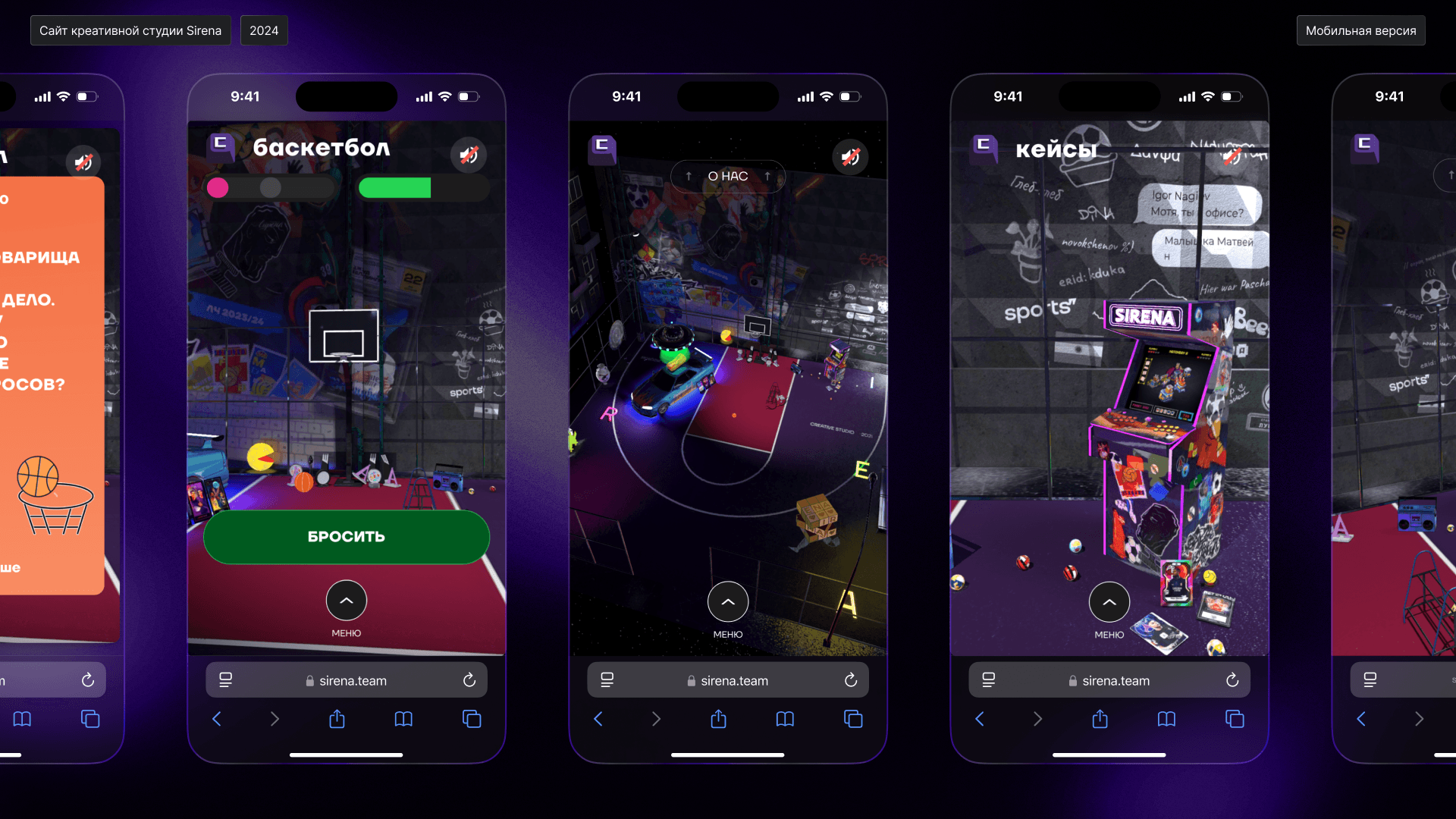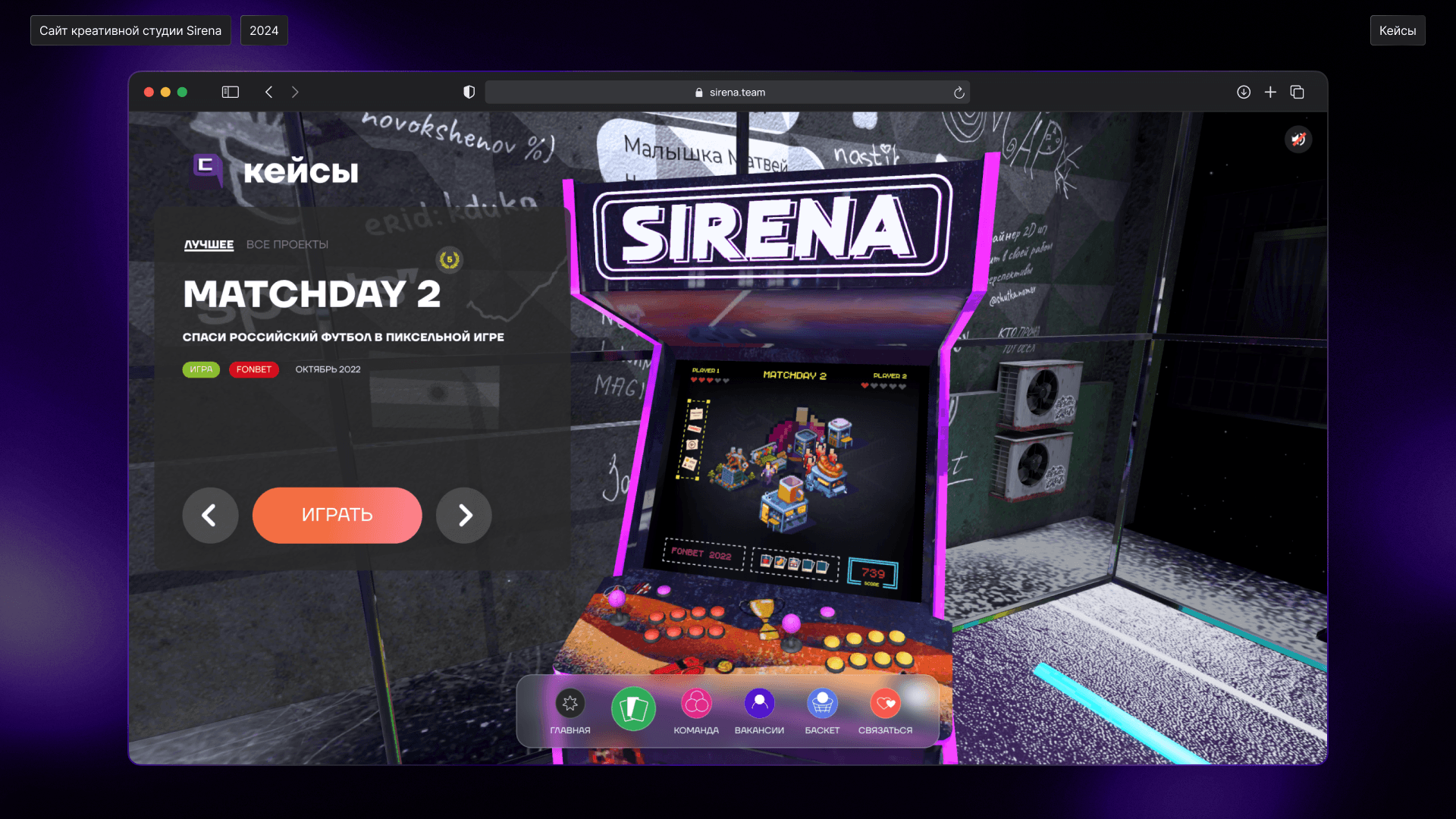 Все наполнение сайта – история студии с разными отсылками. В основе концепции – дворовая коробка, на которой многие из нас рубились в детстве. Pac-Man – первый проект студии. «Булкер» – кафешка рядом с прошлым офисом. На стене – граффити из проектов. Практически все на новом сайте Сирены скрывает отсылку к нам и нашей работе.